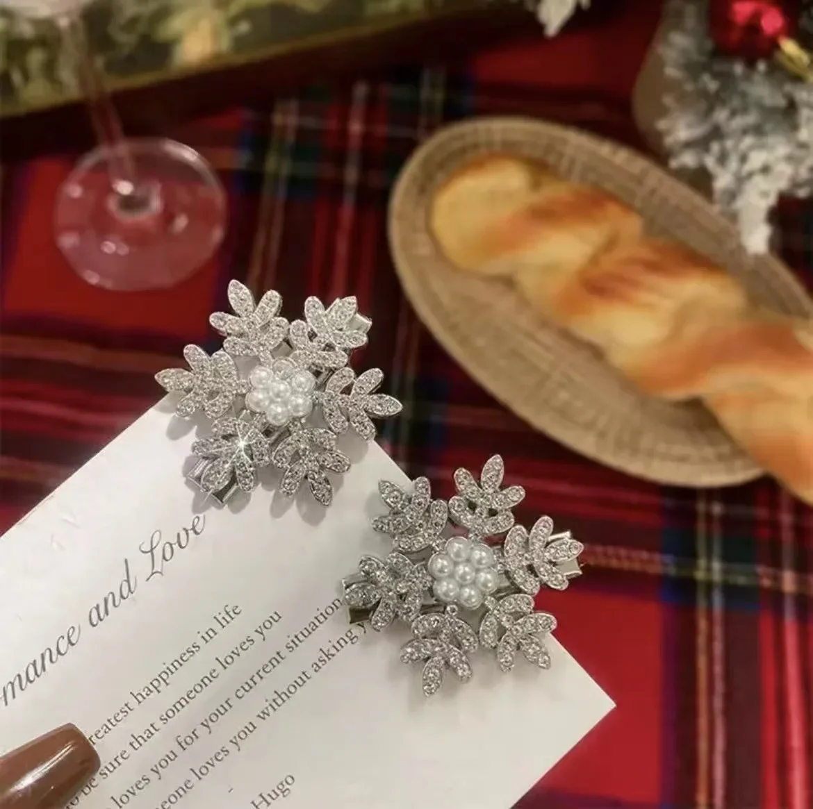 1/5pcs Winter Rhinestone Snowflake Side Clip Hair Pins Christmas New Year Sweet Cute Pearl Barrettes Female Hair Accessories