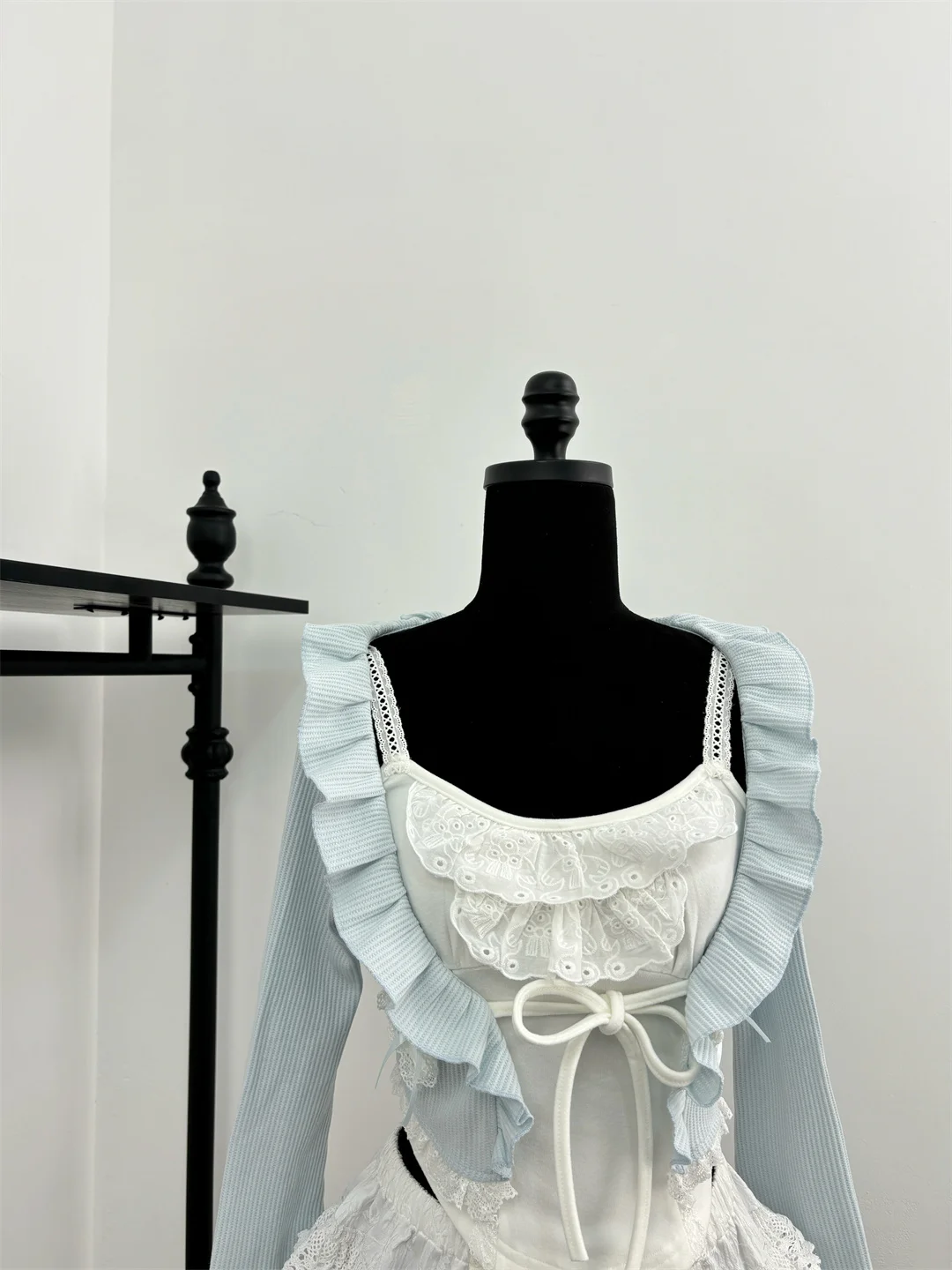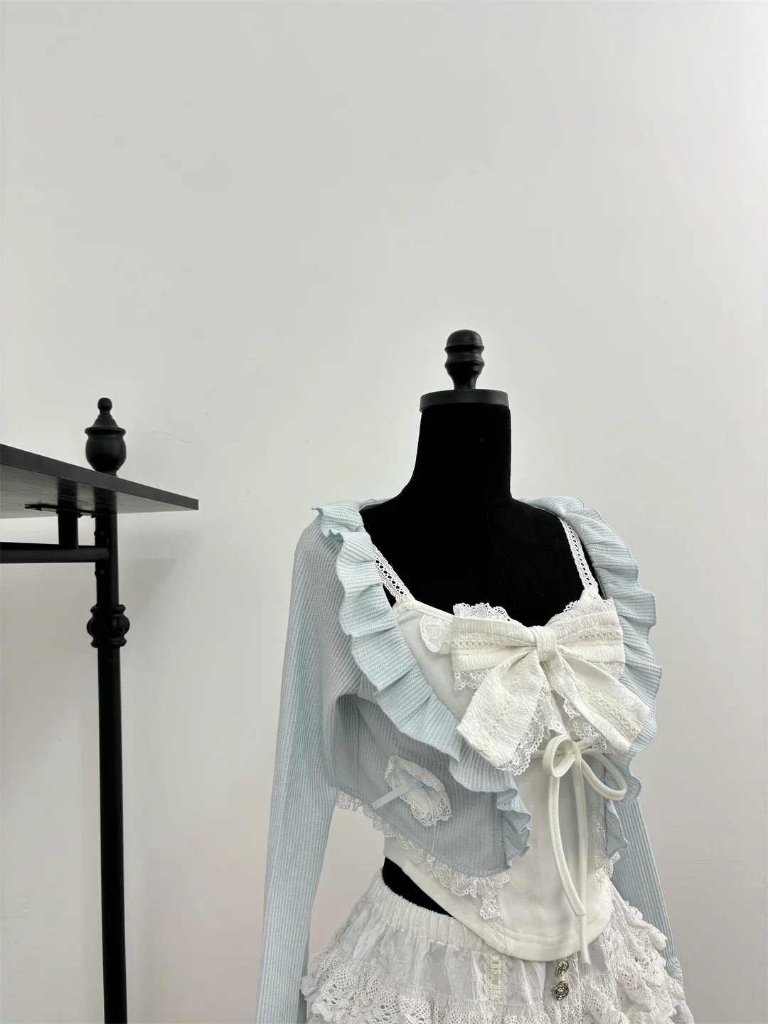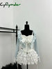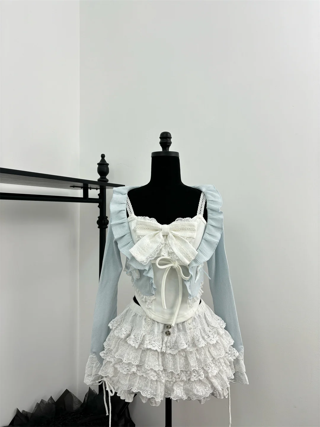 Autumn Sweet Kawaii 3 Piece Sets Women Lace Bow Tops + Cute Mini Skirt+Blue Chic Coat Female Korean Style Fairy Y2k Suit