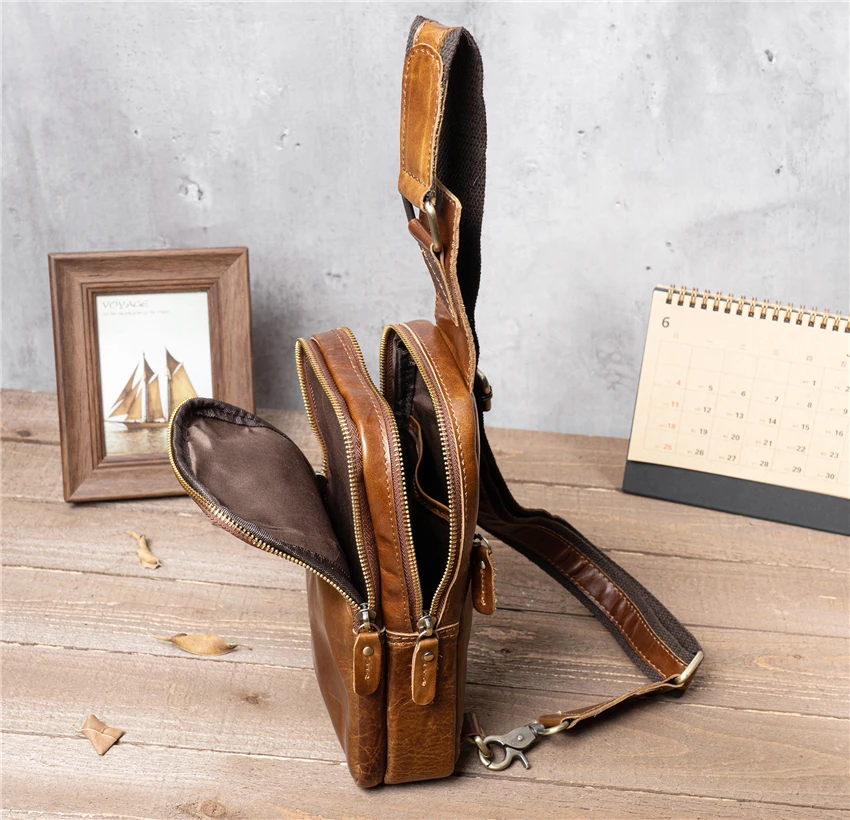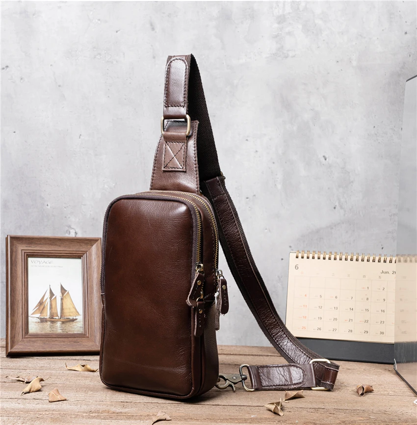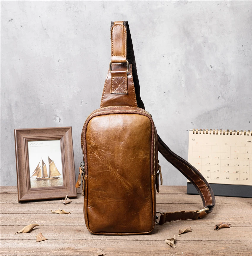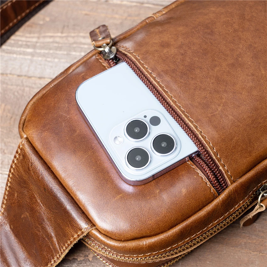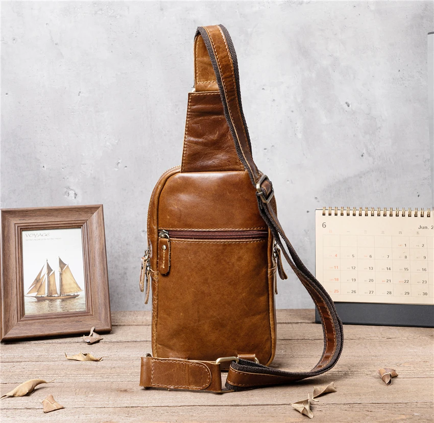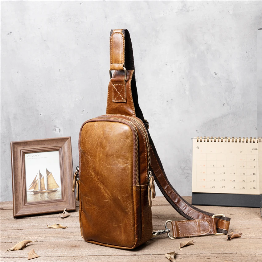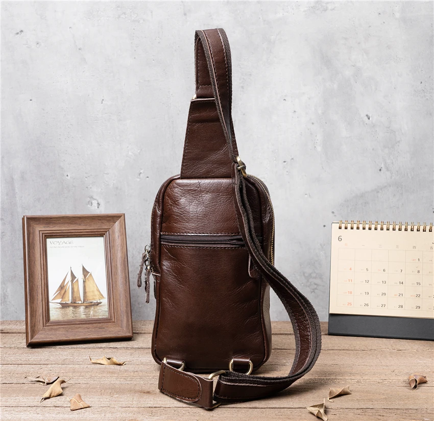 Genuine Leather Chest Bag Male Shoulder Messenger Bag Men Crossbody Business Chest Pack Casual Bag Men Multifunctional Bag