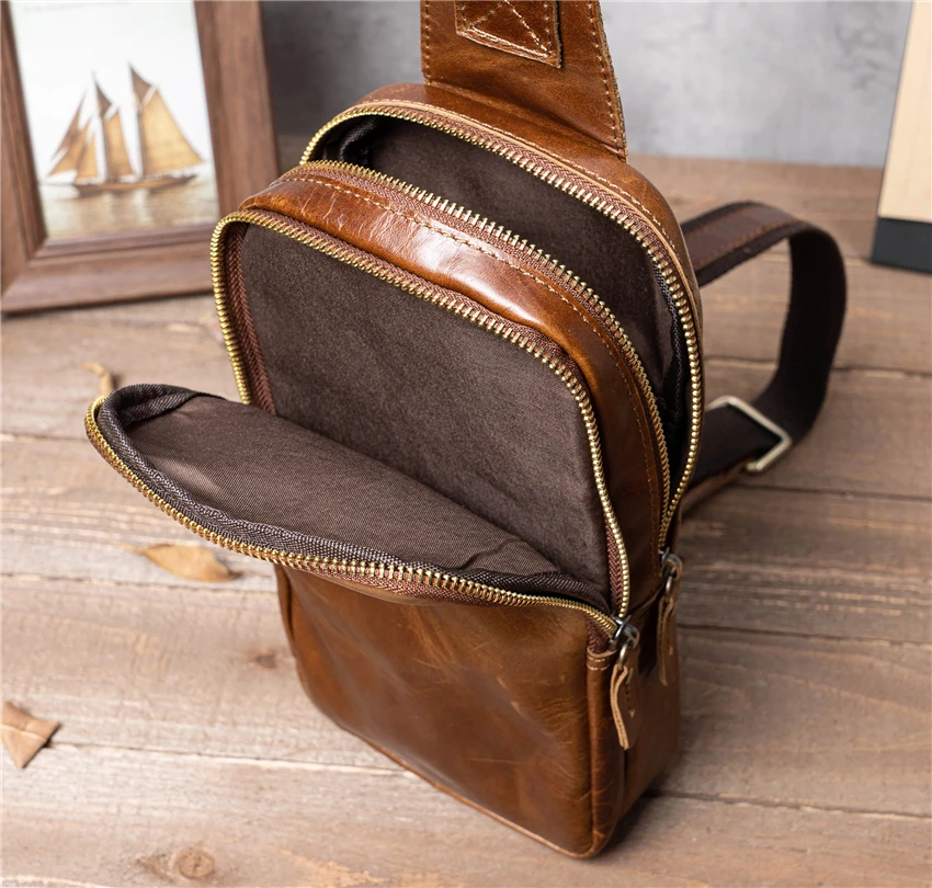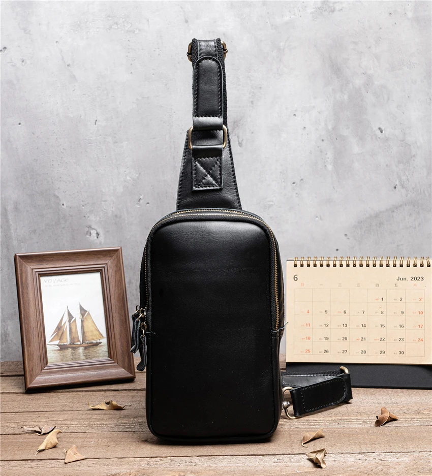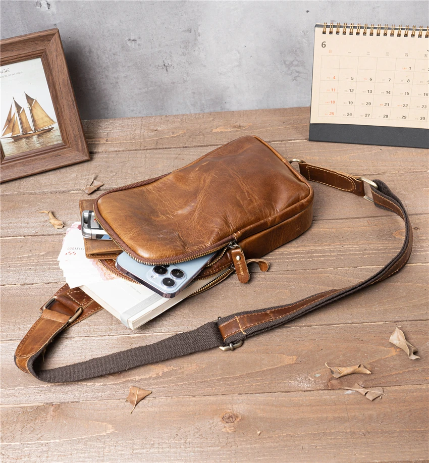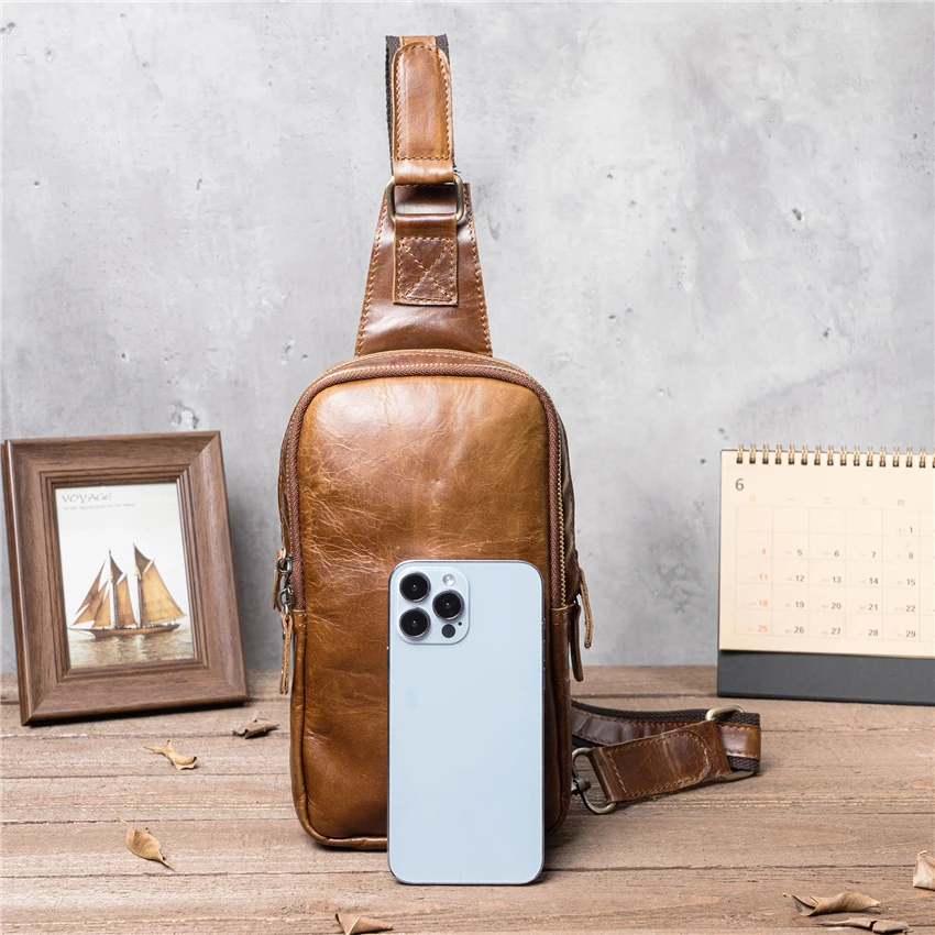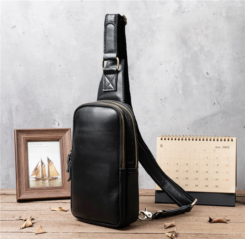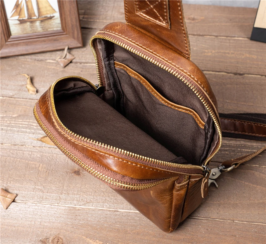 Genuine Leather Chest Bag Male Shoulder Messenger Bag Men Crossbody Business Chest Pack Casual Bag Men Multifunctional Bag