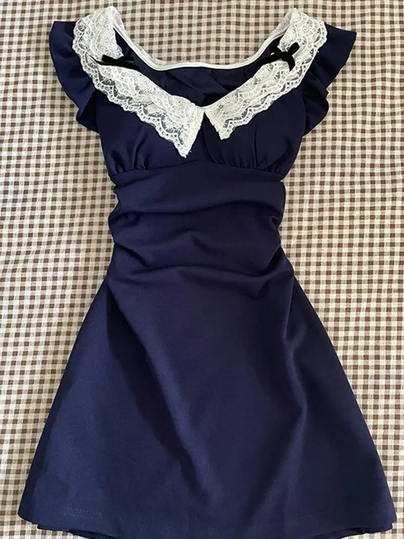 2000S Harajuku French Elegant Dress Women Lcae Y2k Vintage High Street A-line Dress Female Patchwork Korea Fashion Clothes New