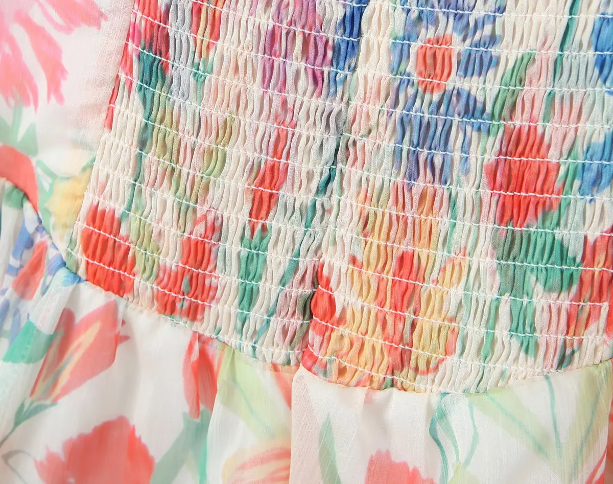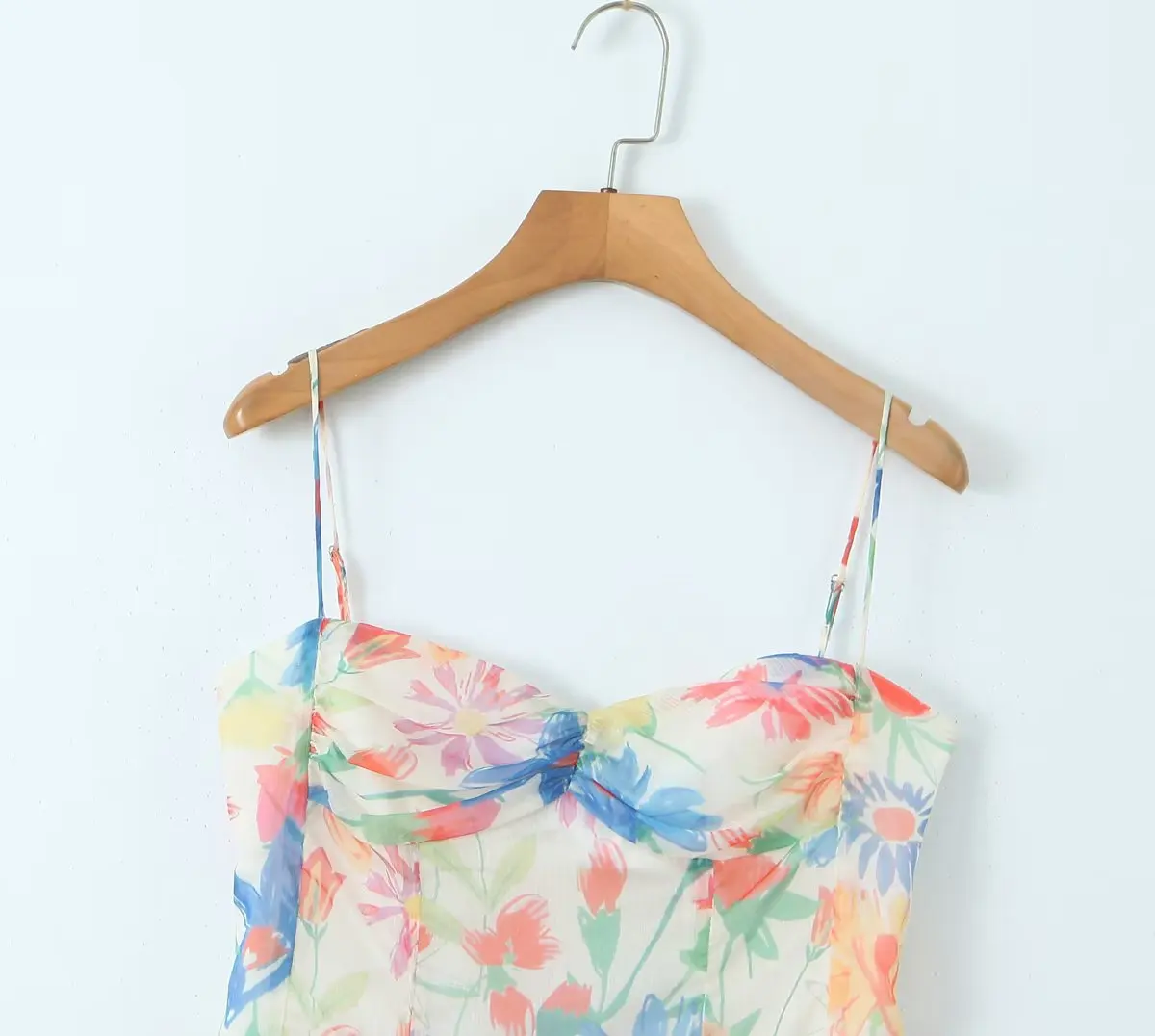 Sexy Flower Print Ruched Bra Corset style Spaghetti Strap Mini Dress Women Party Skater Short Faux Silk Sling Robe Vestido