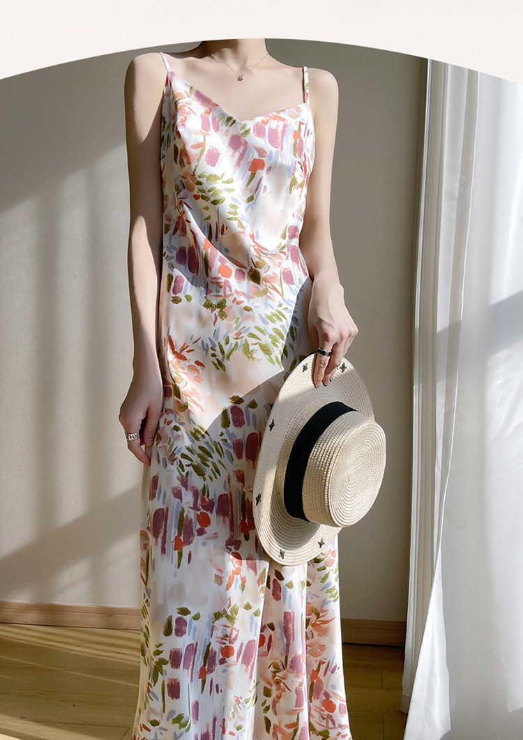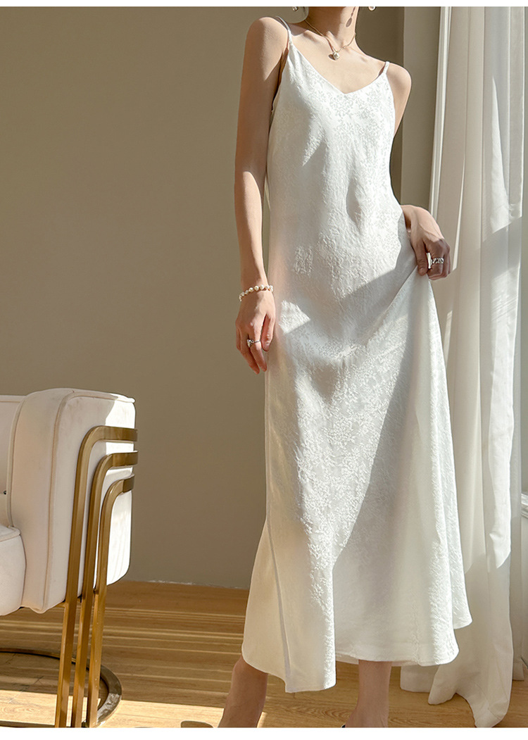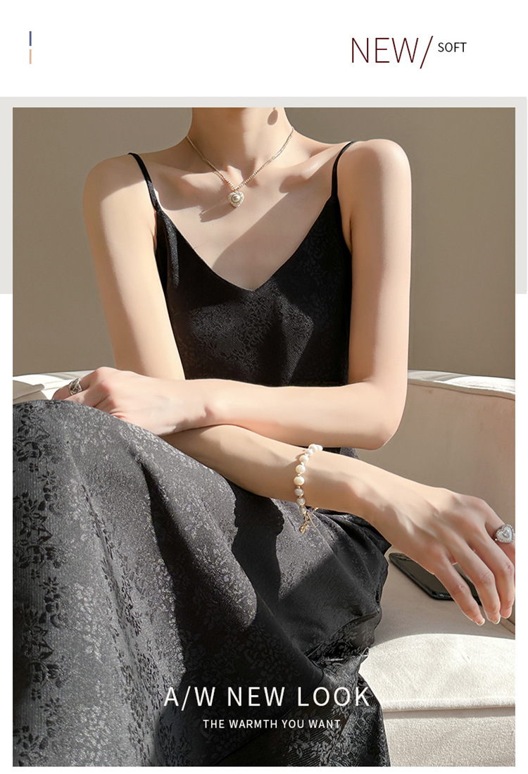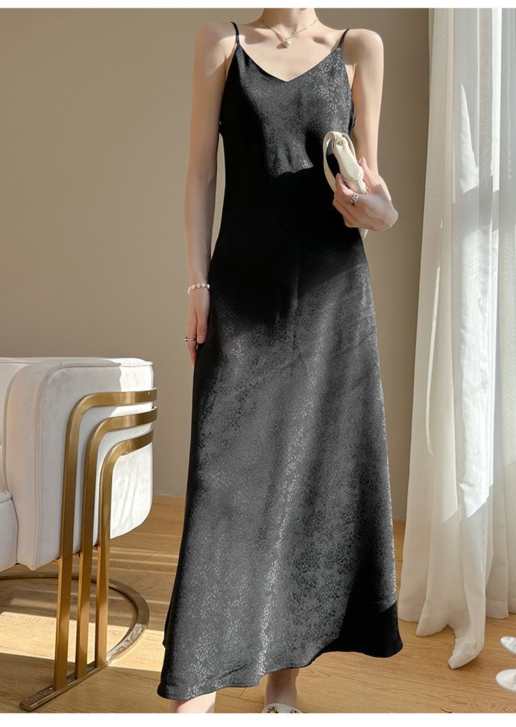 Summer New Acetate Satin Sling Dress Elegant Temperament Looks Slim High Long Silk Camisole Dress Ladies Tide Satin Dress