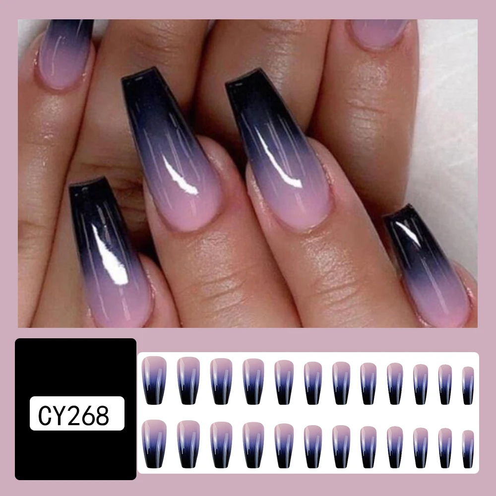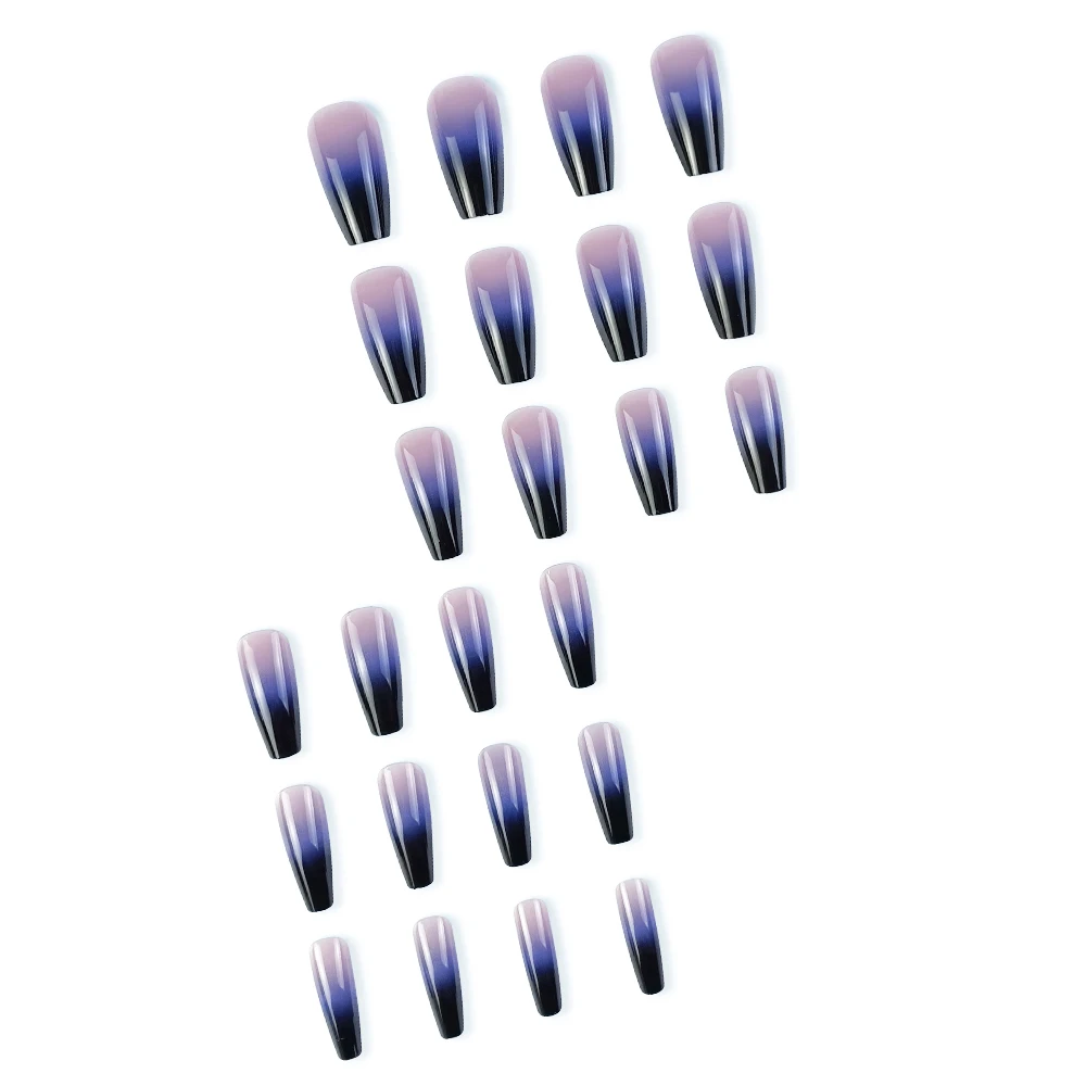 24 Pcs Glossy Medium Long Ballerina Press On Nail Pink And Purple Gradient Fake Nail Artificial Solid Color False Nail For Women