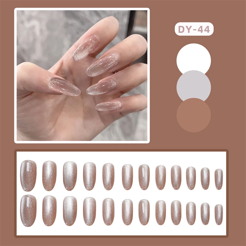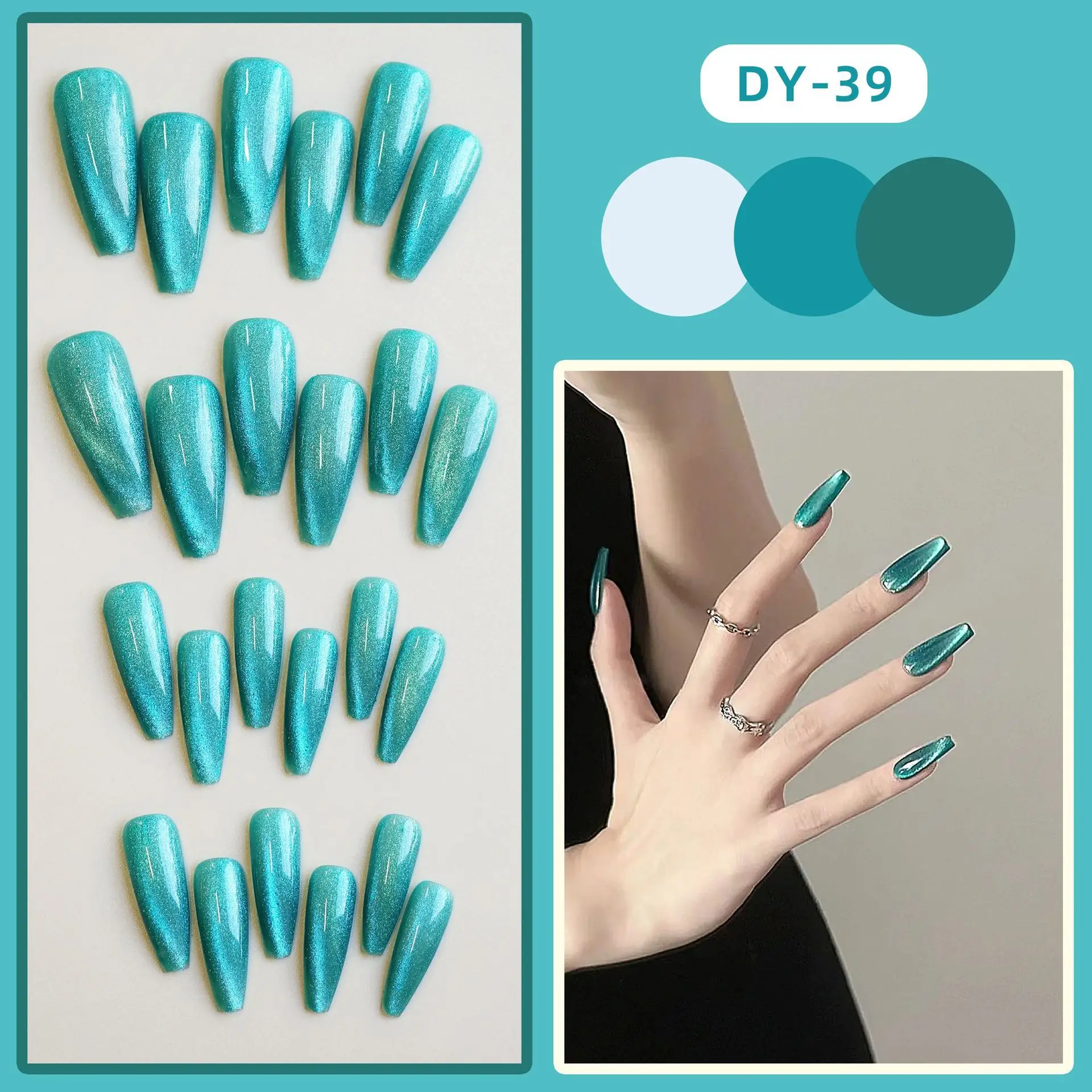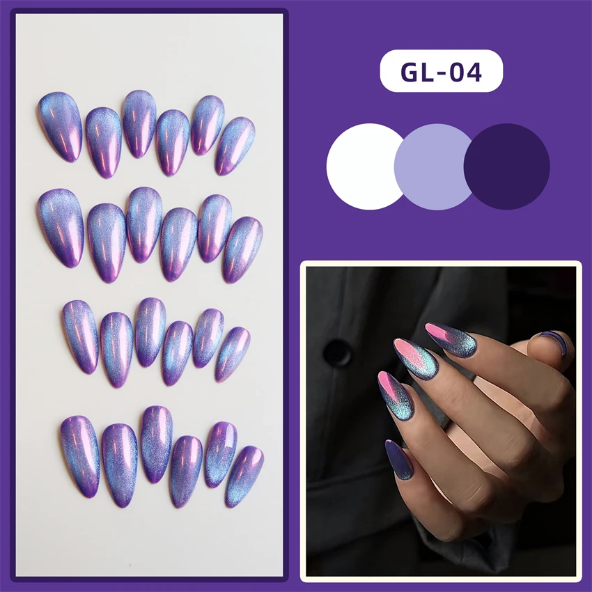 24pcs Artificial Short Coffin Acrylic Nail Art Fake Nails Full Coverage Press On Nails Tips Purple Black Cat Eye False Nail Set