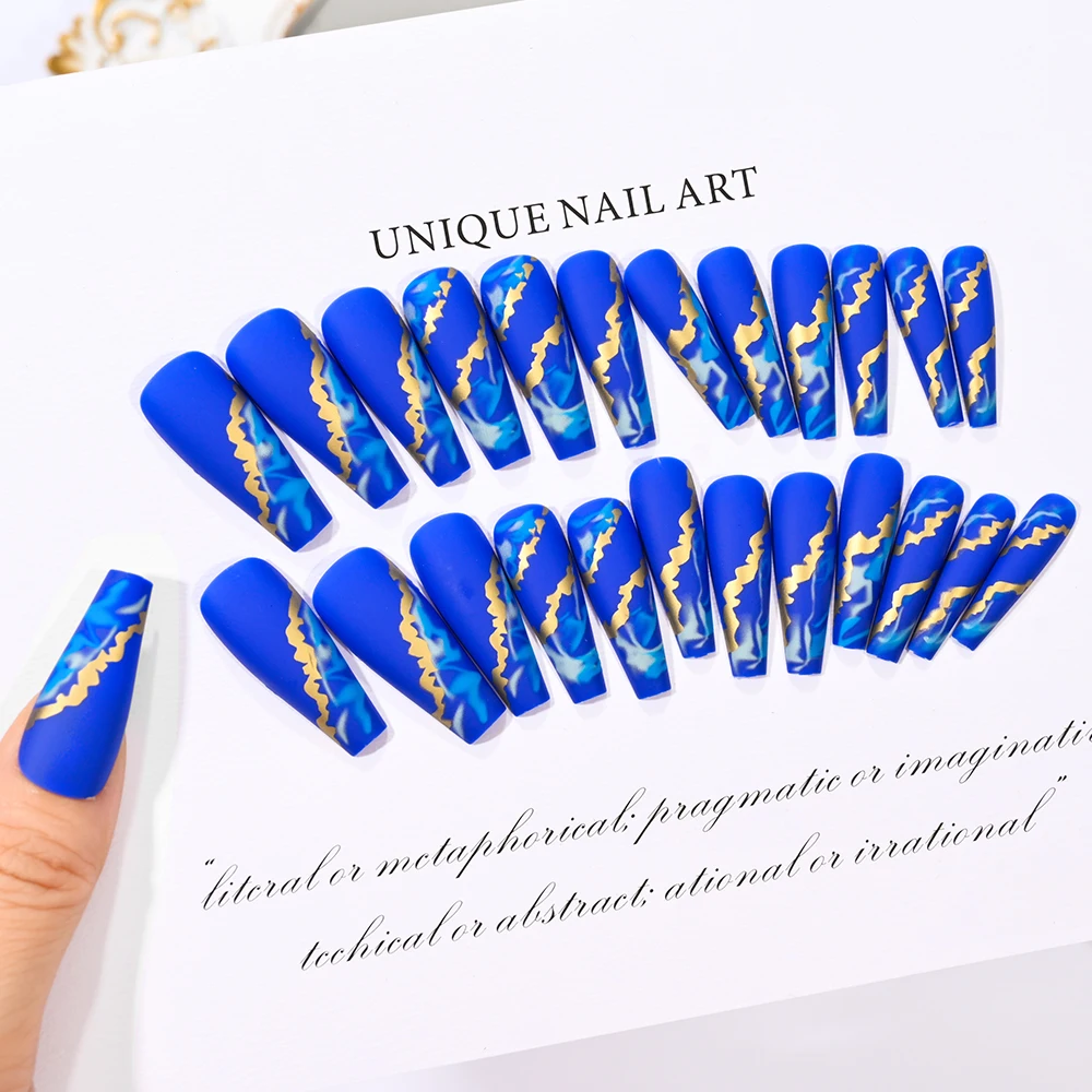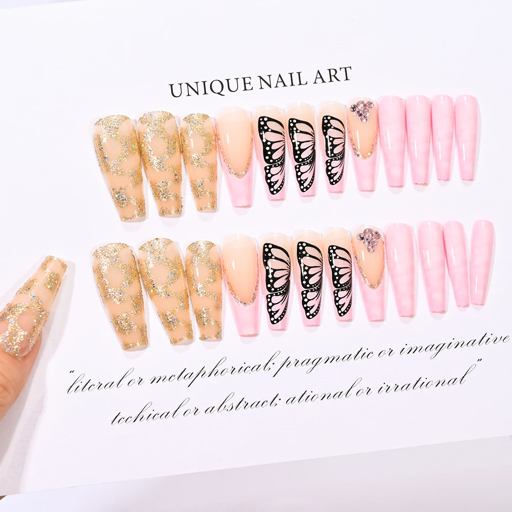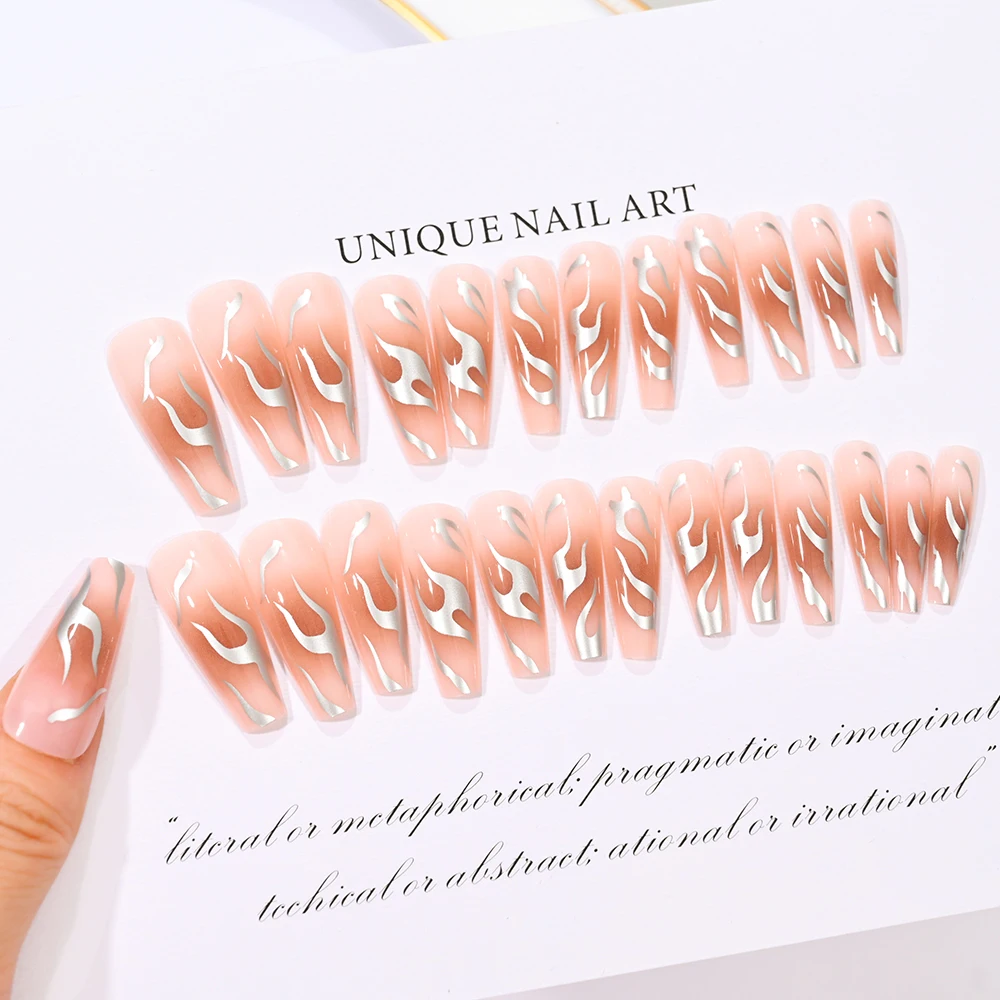 24pcs/box Fake Nail Long Ballet Reusable Acrylic Press On Nails Artificial Nails Full Cover False Nail Tips with Jelly Stickers