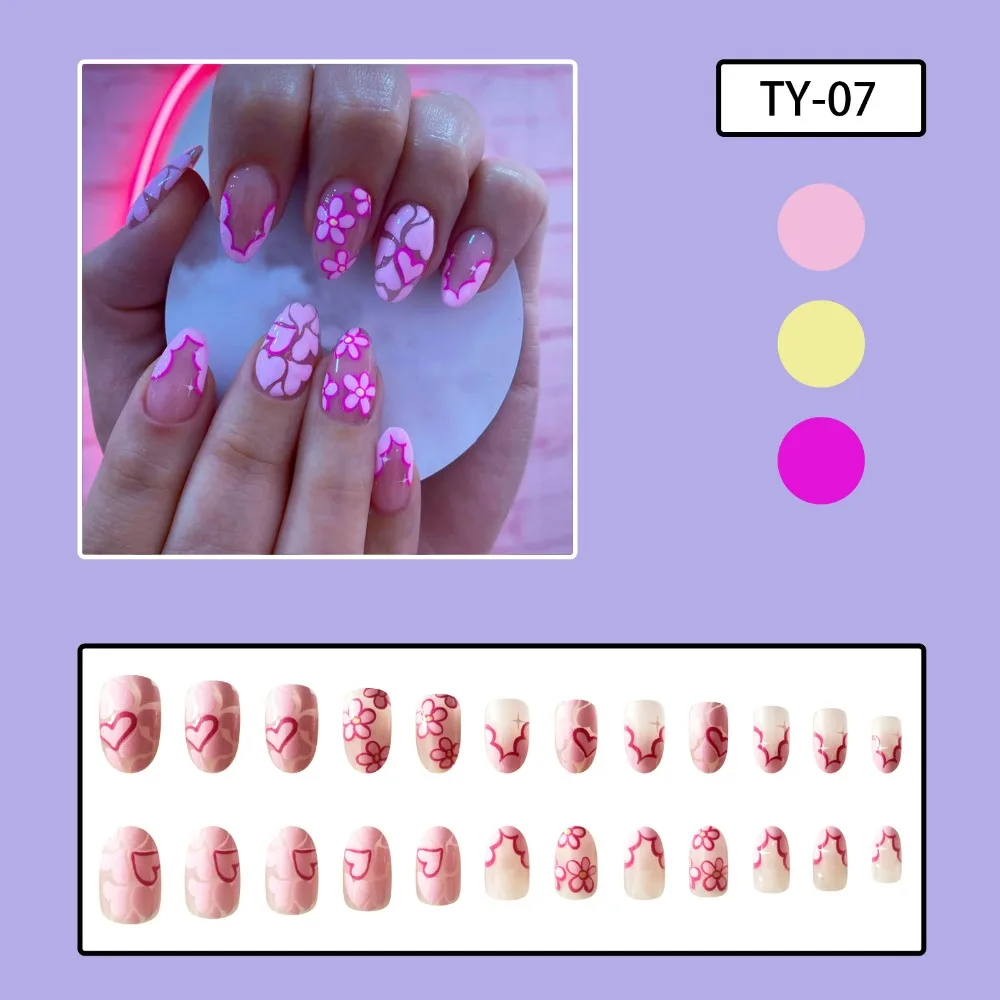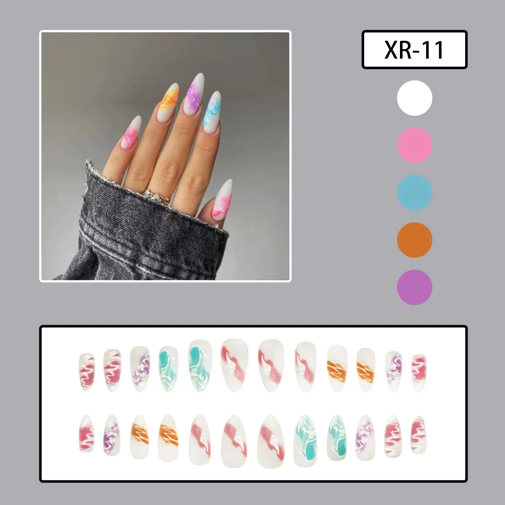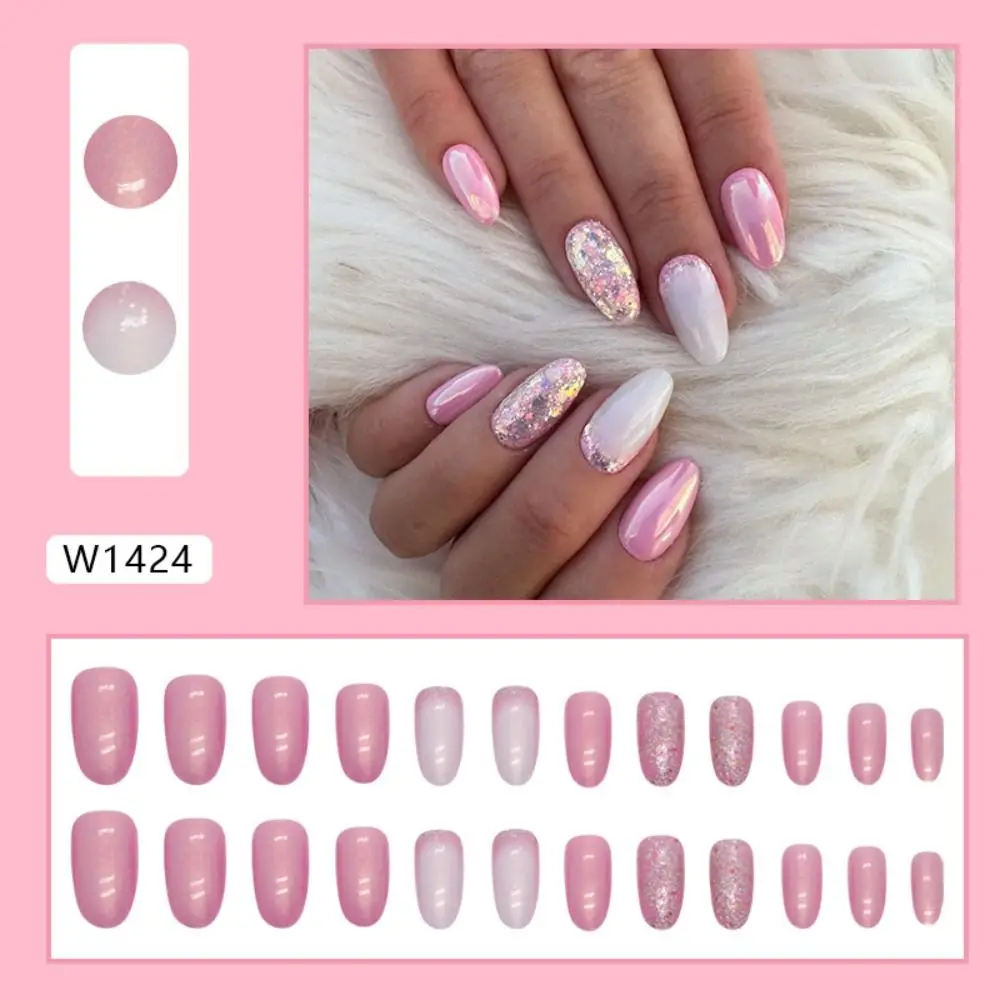 24pcs Long Almond False Nails French Pink Cloud Star Press on Nails Fake Nails DIY Manicure Detachable Gradient Flash Nail Tips