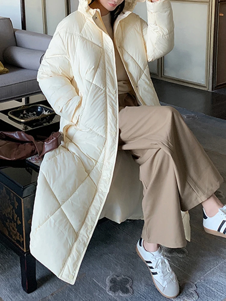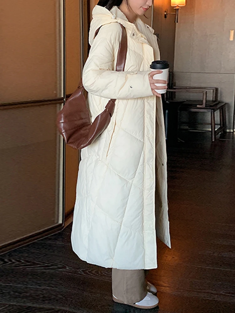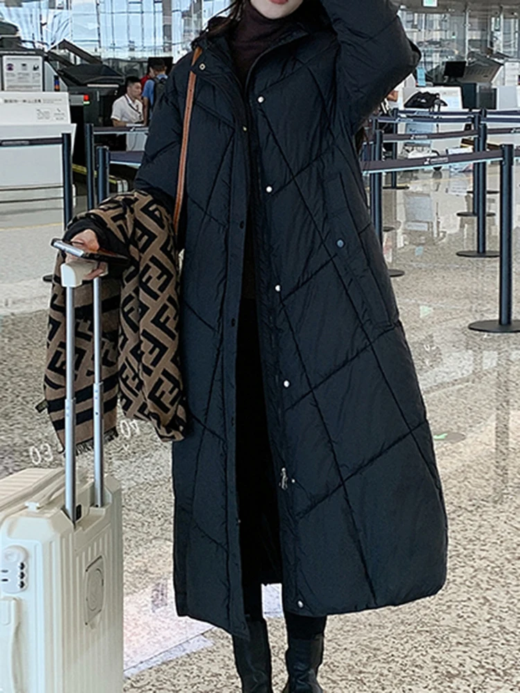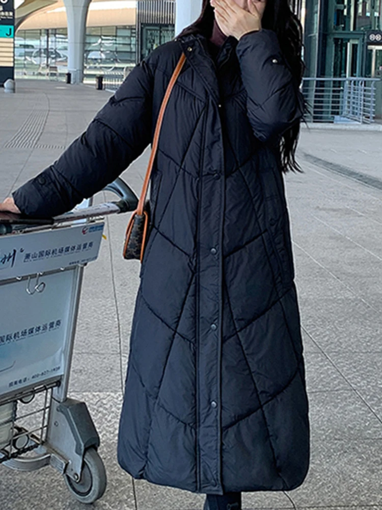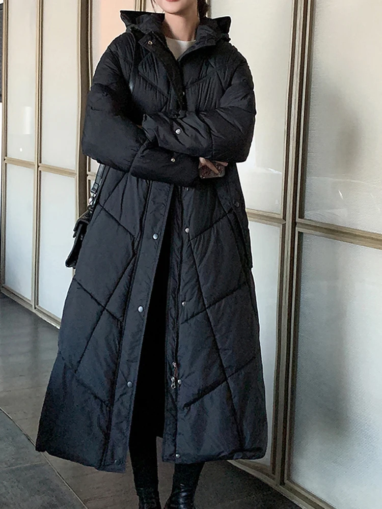 Black Parkas for Women Hooded Turtleneck Thermal Casual Long Coat Winter Fashion Loose Single Breasted Outerwear