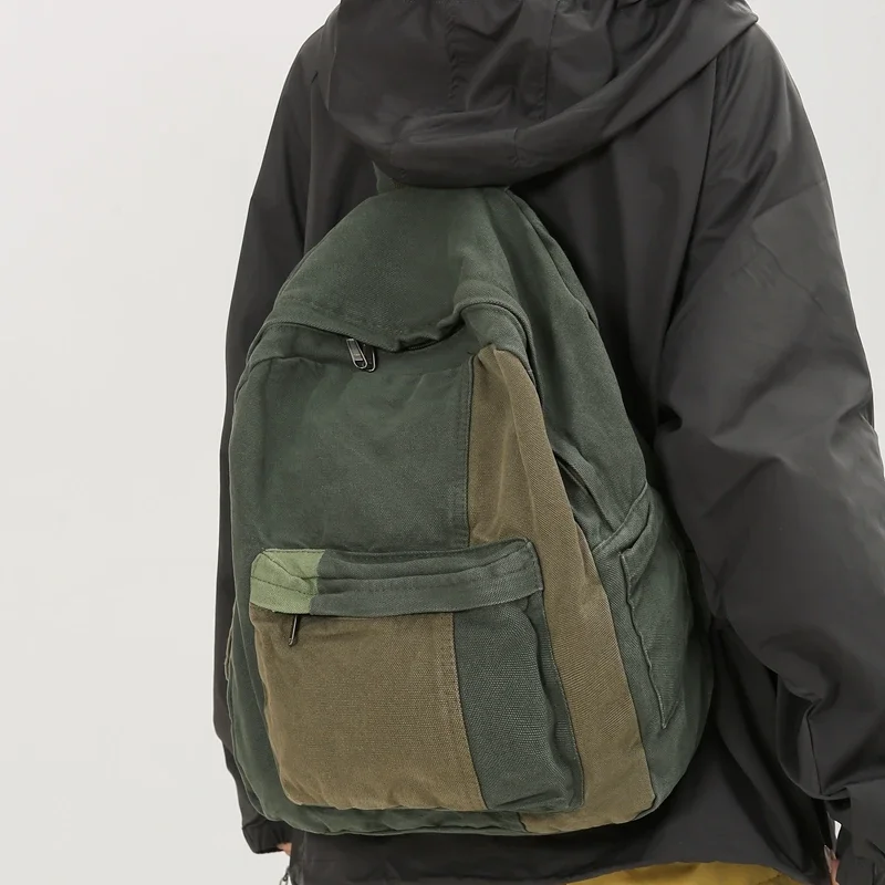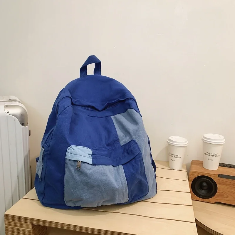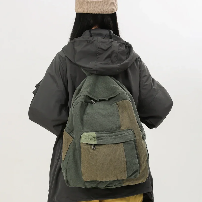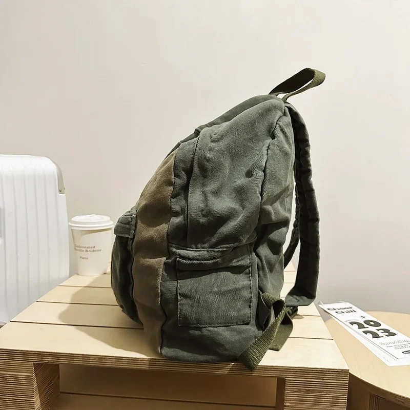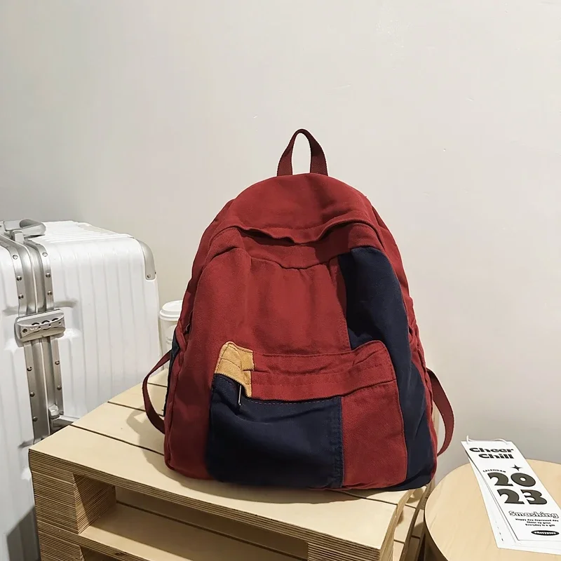 Canvas Women's Backpack Vintage Shoulders Bag College Knapsack Patchwork Packbag Travel Rucksack Student Mochila Y2K Book Bag