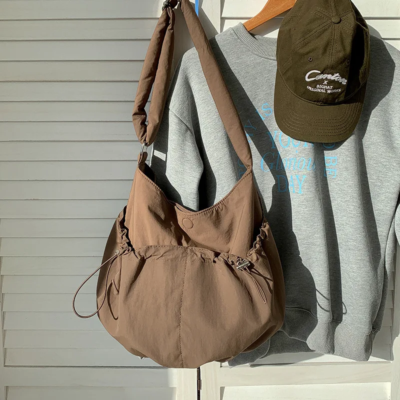 College Students Pleated Bag Casual Niche Korean Nylon Bag Large Capacity Female Crossbody Shoulder Bag