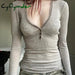 Crop Tops y2k Aesthetic Fairy Grunge Women Knitted Button Long Sleeve Slim 2000s Aesthetic T Shirts Harajuku Tees Clothes
