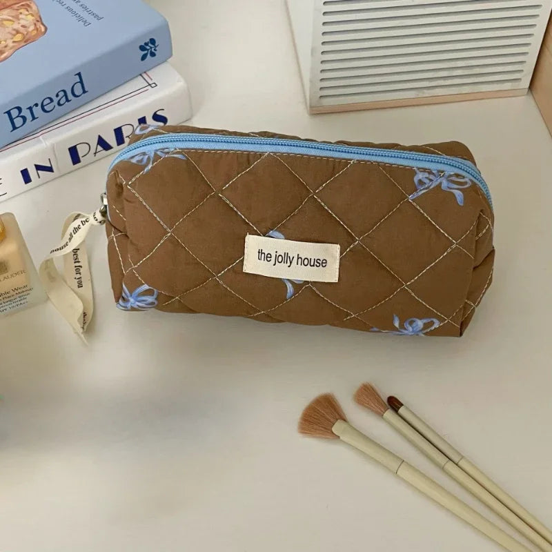 Cyflymder 1 Pc Korean Fashion Bow Pencil Case for Kids Girl Coffee Pink Green Color Dot Bow Stationery Bag Large Capacity Pen Storage Bag