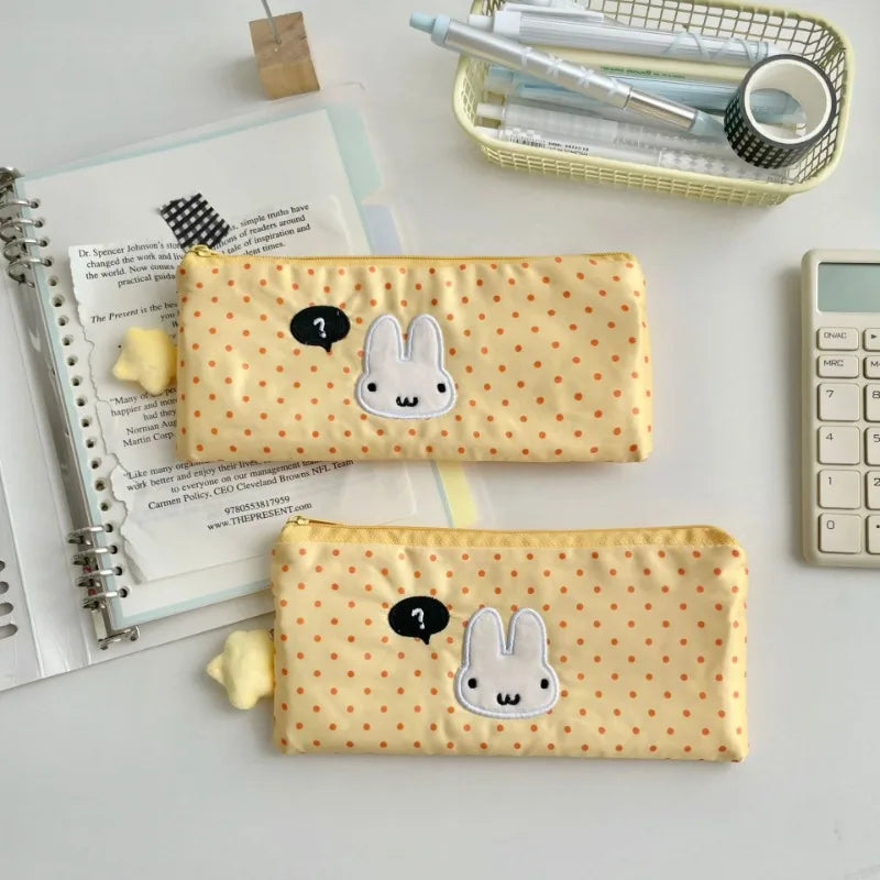Cyflymder 1 Piece Beige Yellow Pencil Case for Kids Girl Casual Korean Fashion Polk Dot Stationery Ita Badge Clip Storage Bag Pencil Pouch