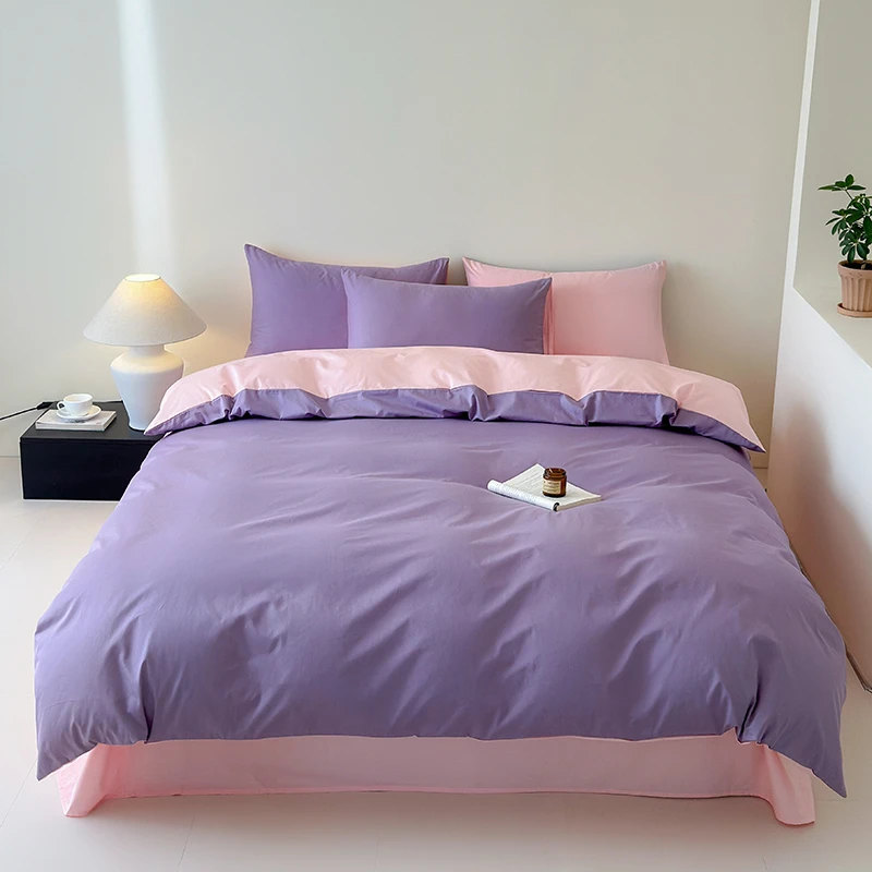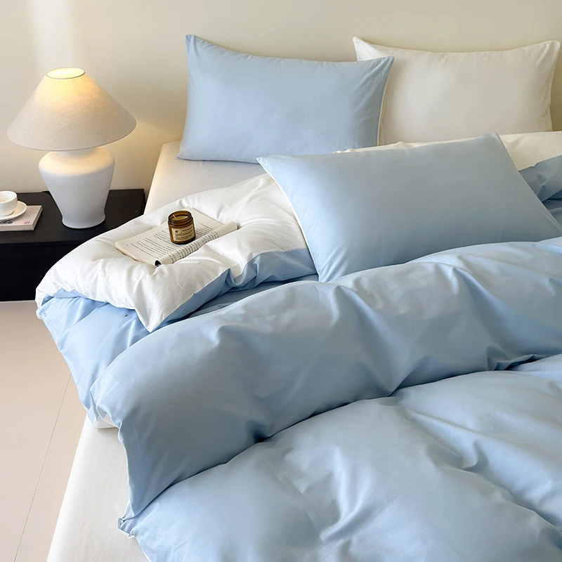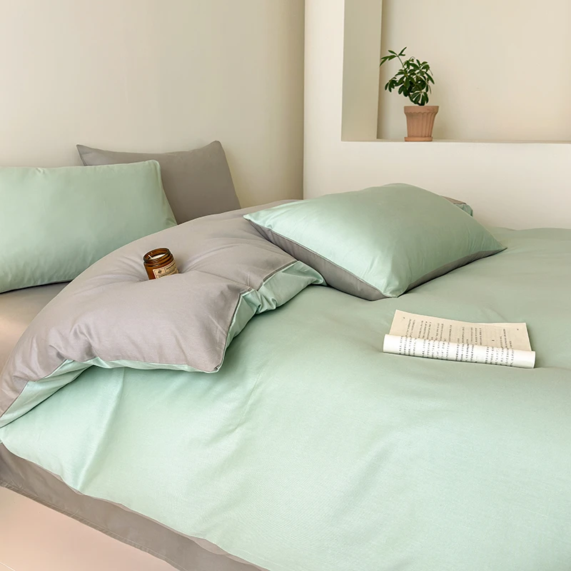 Cyflymder 100% Cotton Single Twin Double Solid Color Reversible Bedding Set Soft Comfortable Duvet Cover Bed/Fitted Sheet Pillowcases