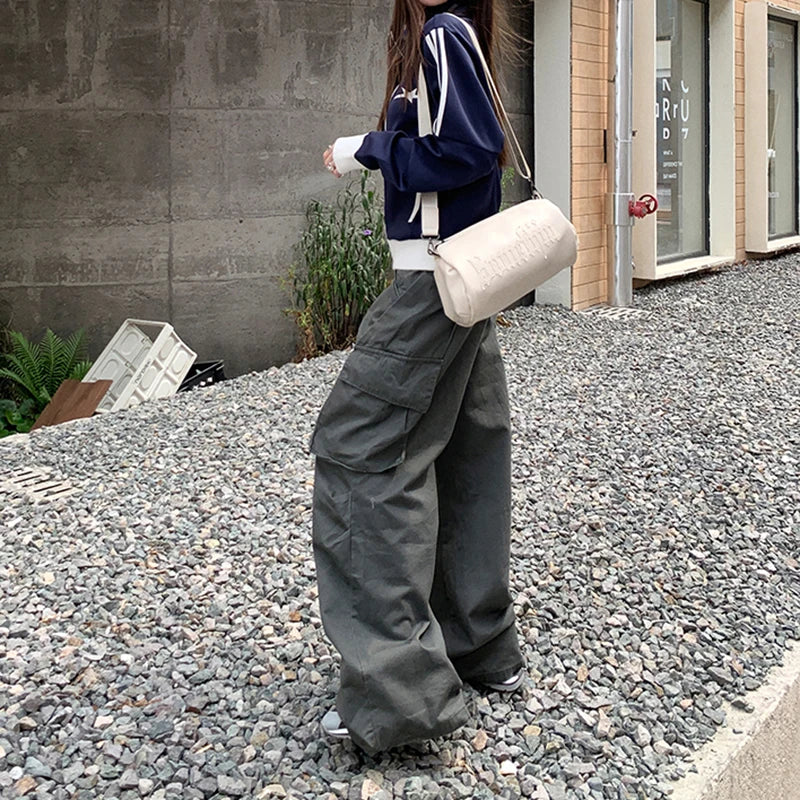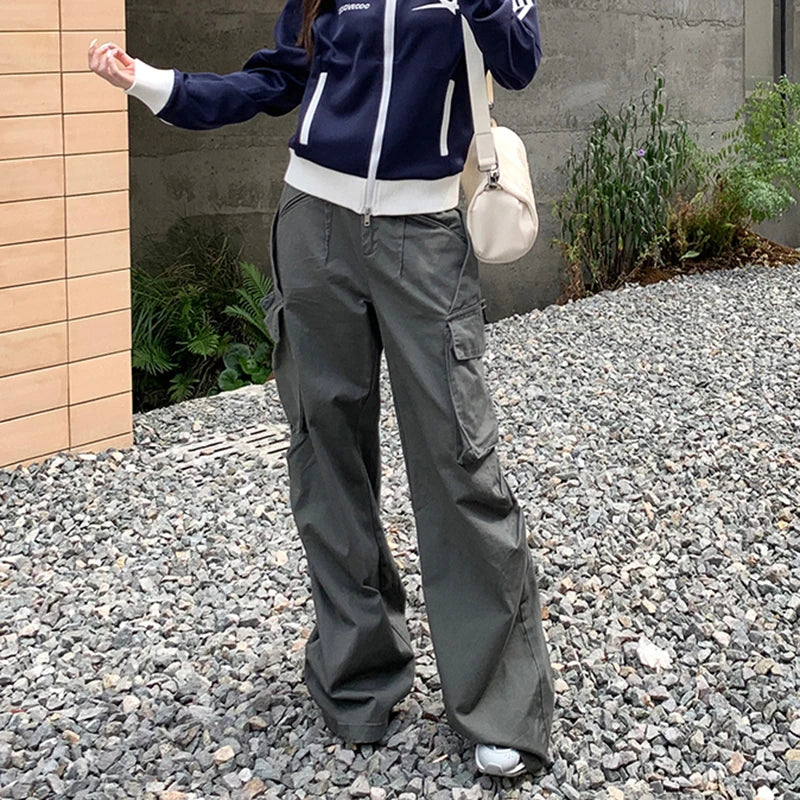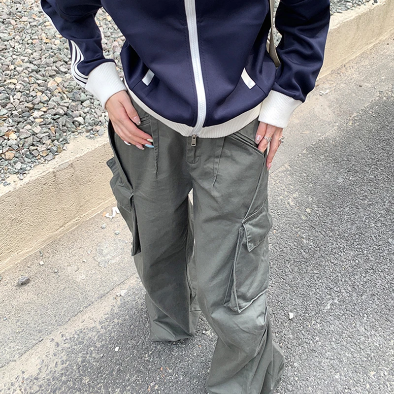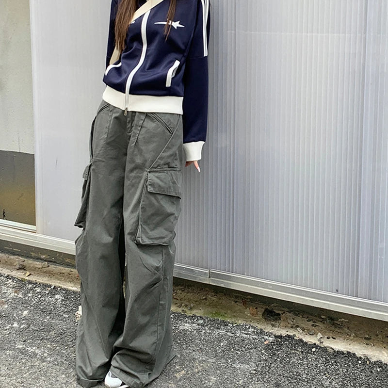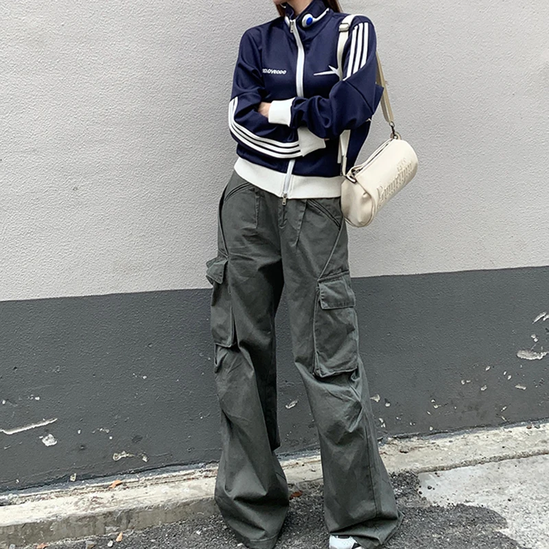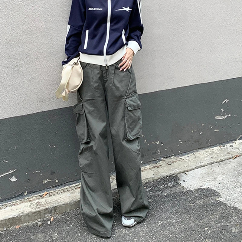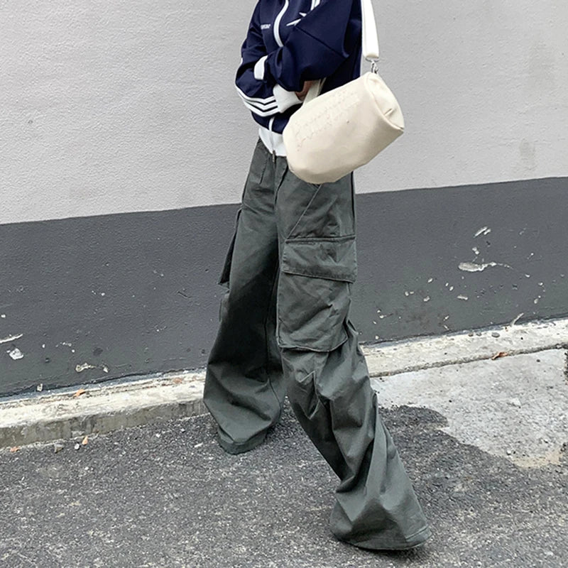 Cyflymder 100% Cotton Women Cargo Pants Loose Y2K Wide Leg Pants Fashion Designed Pockets Female Baggy Trousers New