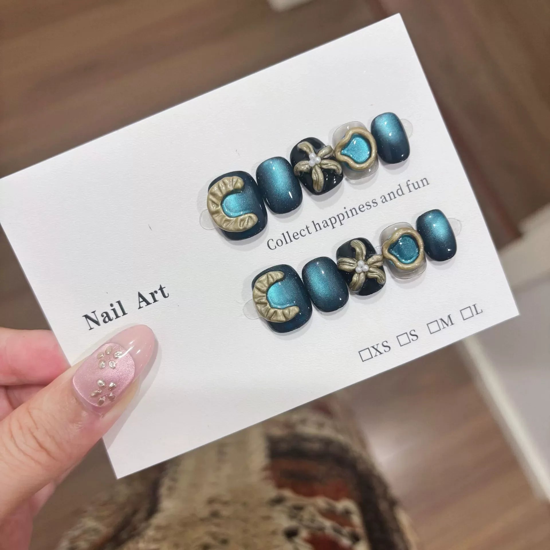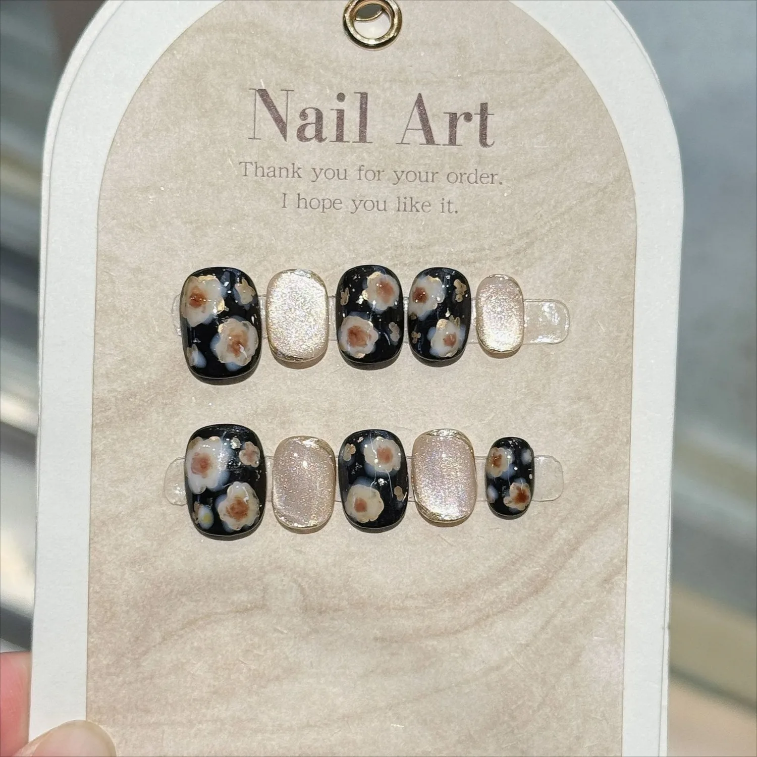 Cyflymder 10Pcs Cat Eye Handmade Press on Nails Flower Pattern Fake Nails Wearable Stick-on Nail False Nails Накладные Ногти Uñas Postizas