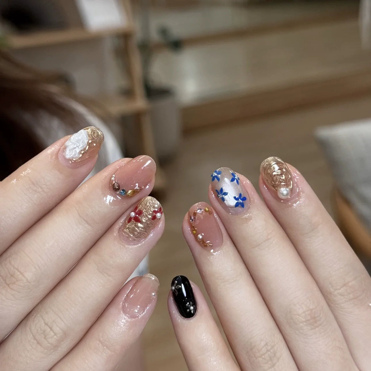 Cyflymder 10Pcs Cat Eye Oval Handmade Press on Nails Flower Fake Nails Retro Wearable Stick-on Nails Full Cover False Nail Накладные Ногти