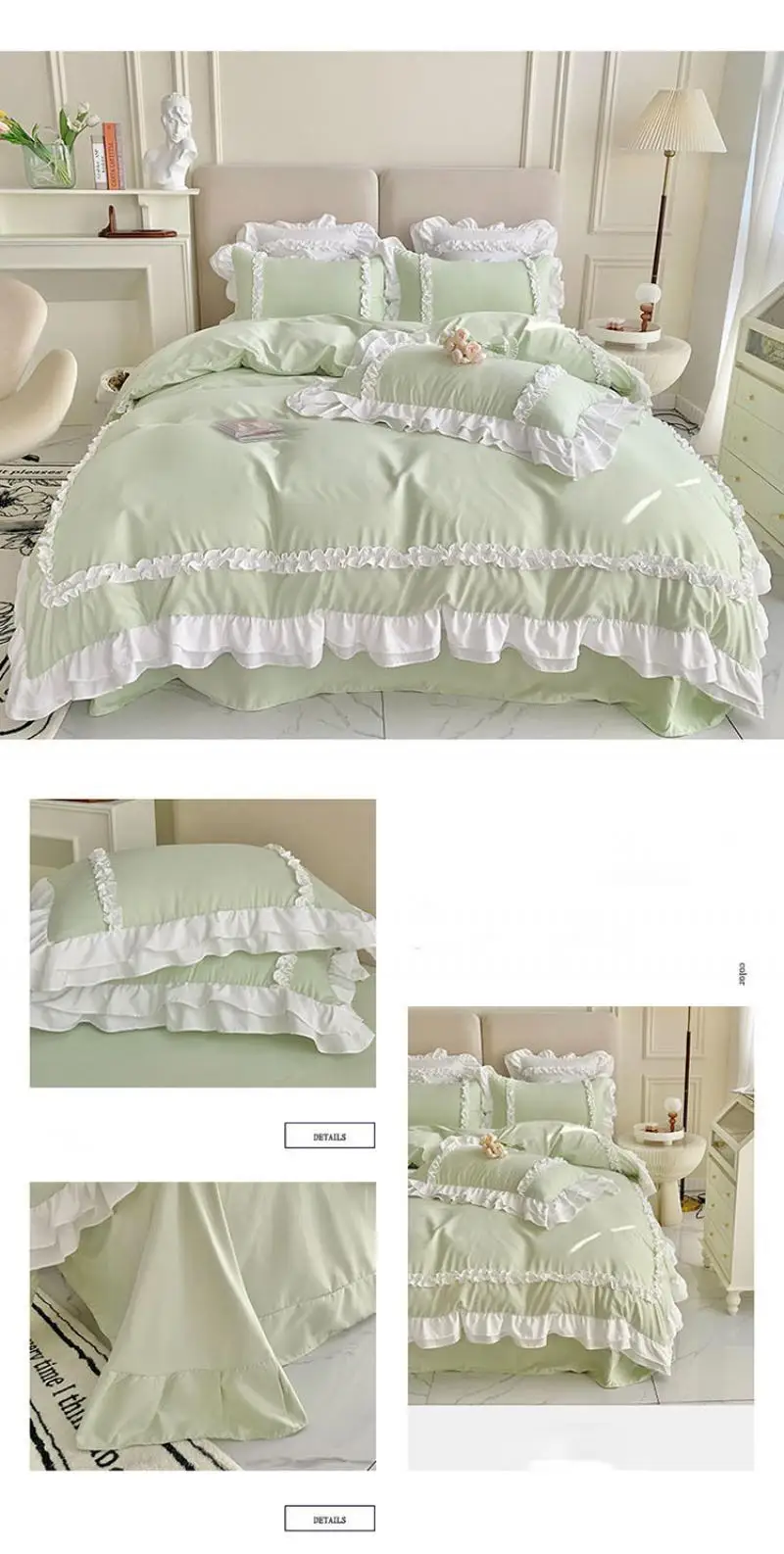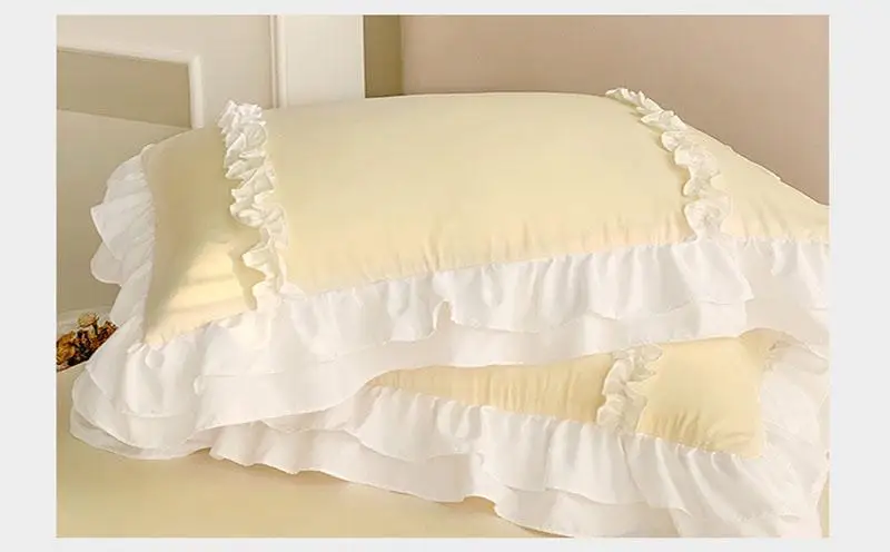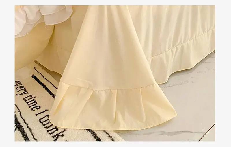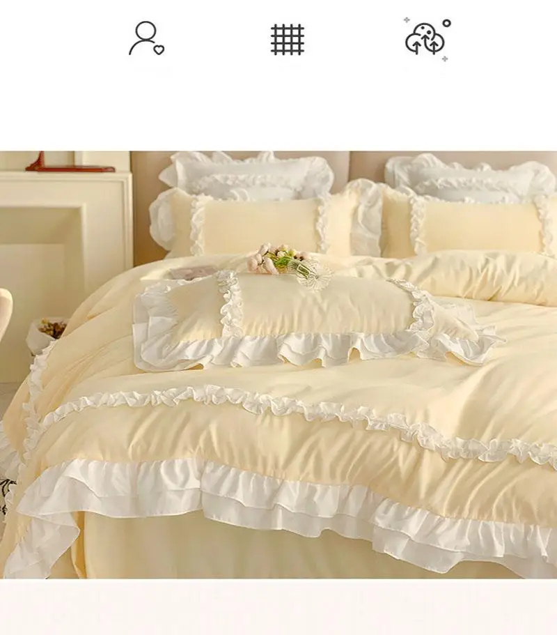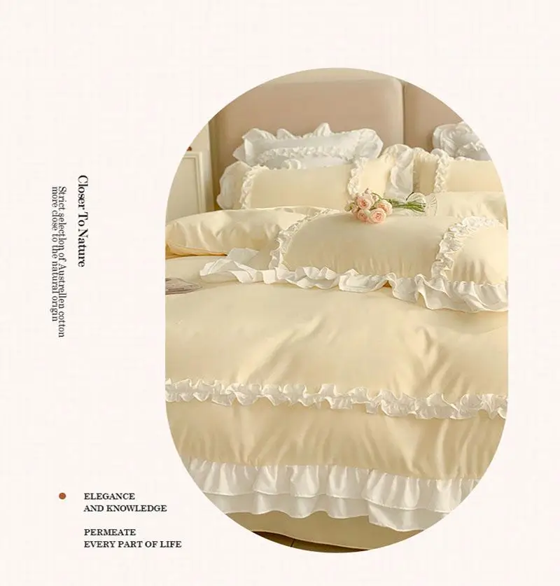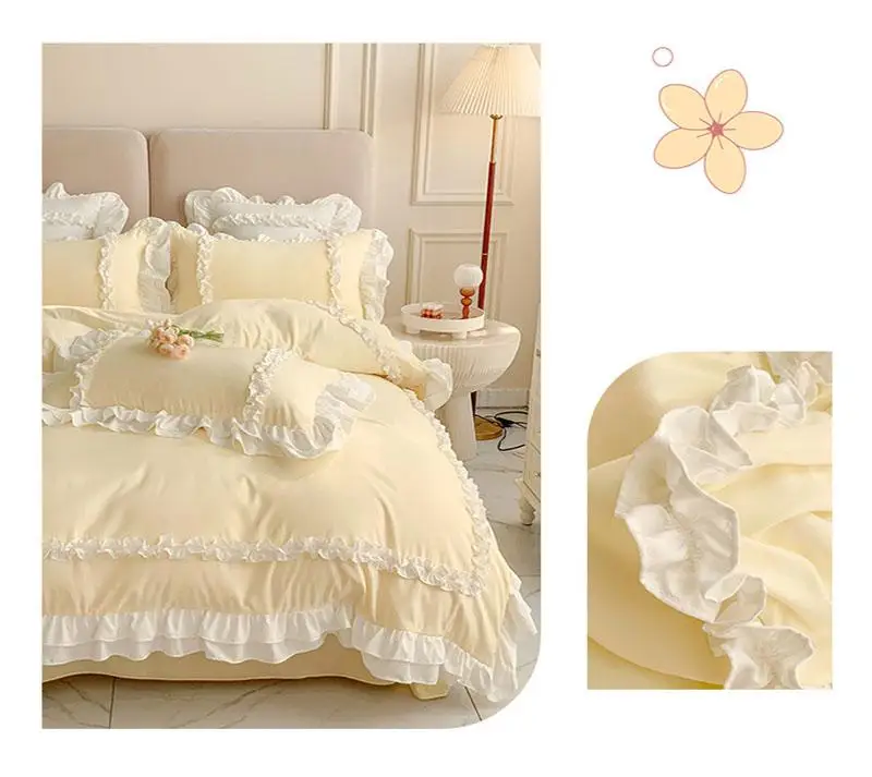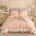 Cyflymder 200X230Cm Korean Princess Lolita Bed 4-Piece Set Solid Washed Cotton Breathable Bed Sheet Duvet Cover Bedding Set with Lace