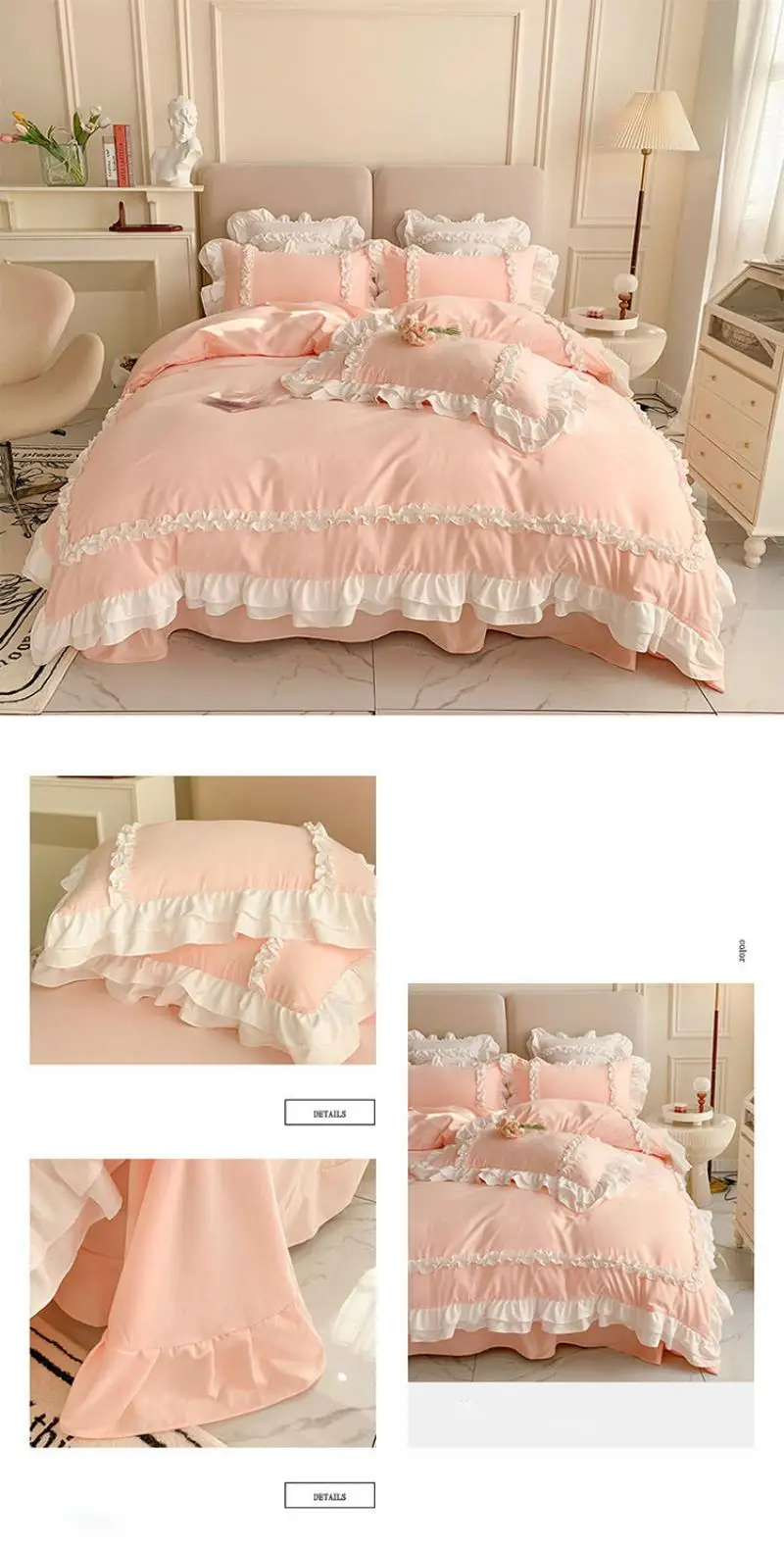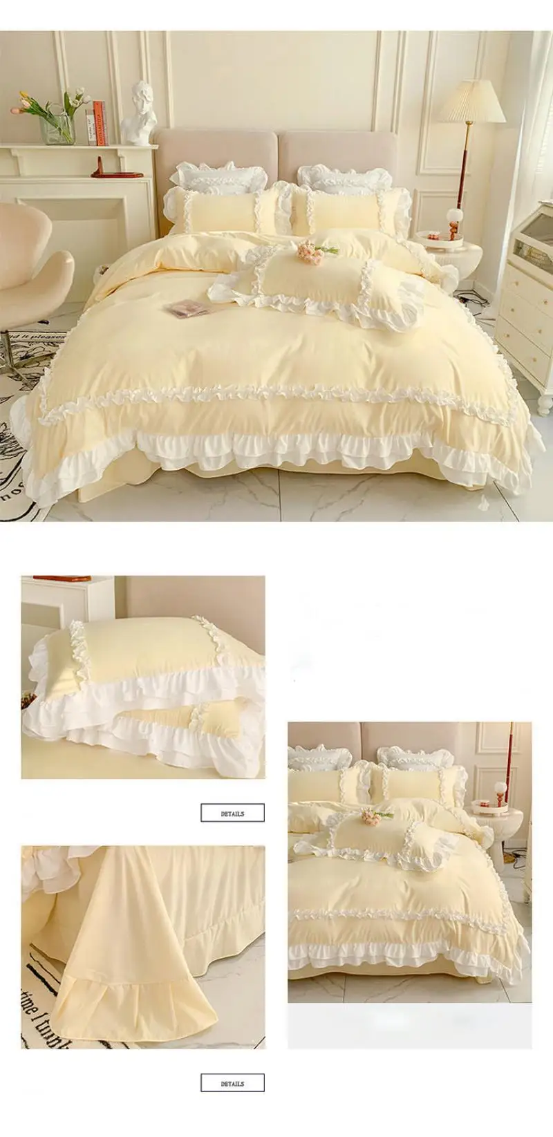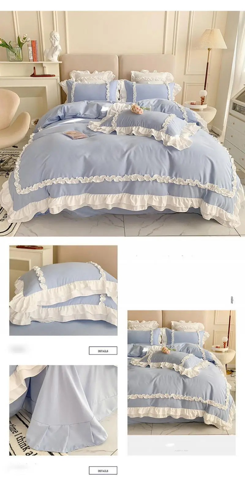 Cyflymder 200X230Cm Korean Princess Lolita Bed 4-Piece Set Solid Washed Cotton Breathable Bed Sheet Duvet Cover Bedding Set with Lace