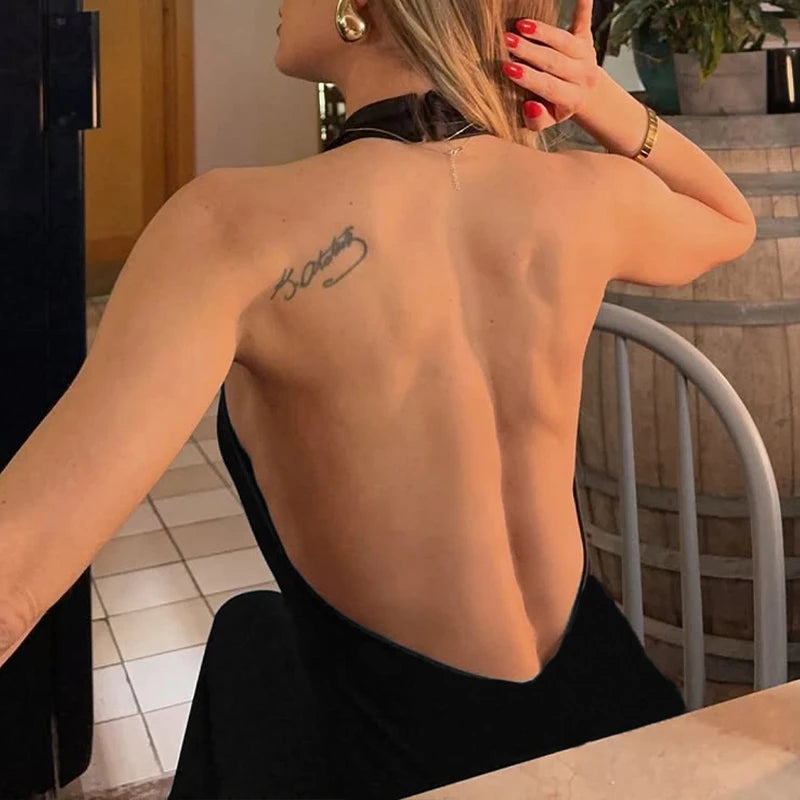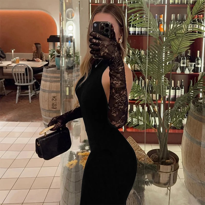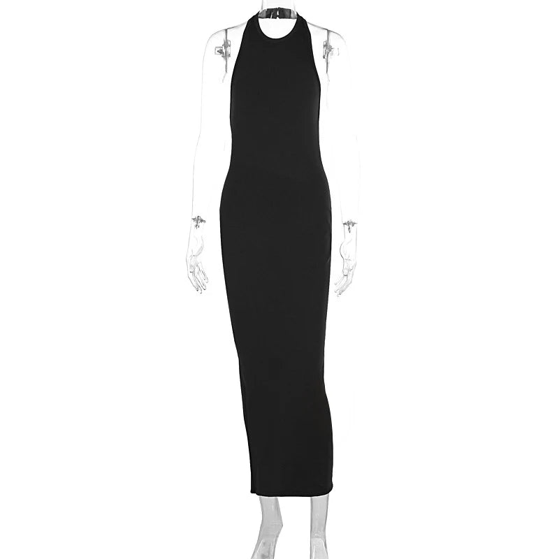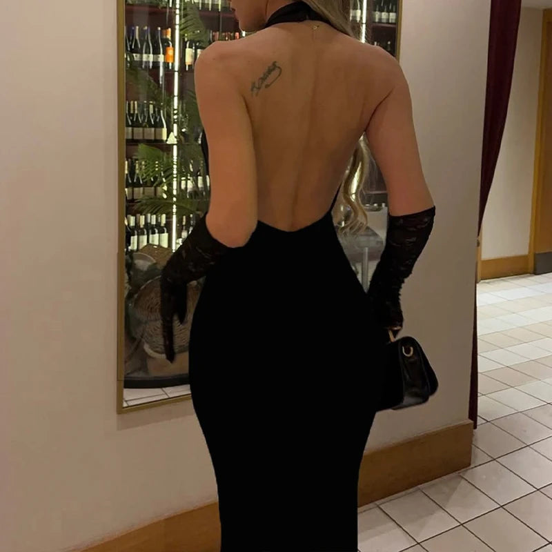 Cyflymder 2025 Ladies Classic Backless Hanging Neck Off-shoulder Fashion Sexy Bodycon Package Hip Split Hem Maxi Dress Party Clothing