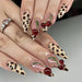 Cyflymder 24Pcs 3D Flower Cherry Chain Press on False Nails Red Leopard Print French Manicure Tips Mid-length Almond Detachable Fake Nails