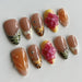 Cyflymder  24pcs Brown French Almond Press on Nails Pink Flower False Nails Wearable Stick-on Nails Fake Nail Накладные Ногти 네일팁 Uñas