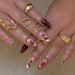 Cyflymder 24pcs Brown French Almond Press on Nails Pink Flower False Nails Wearable Stick-on Nails Fake Nail Накладные Ногти 네일팁 Uñas