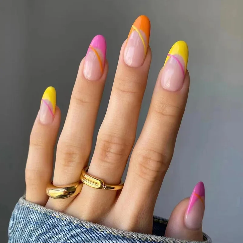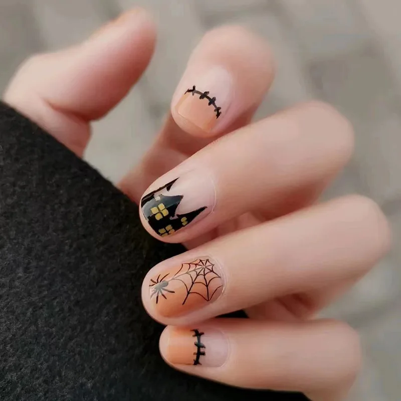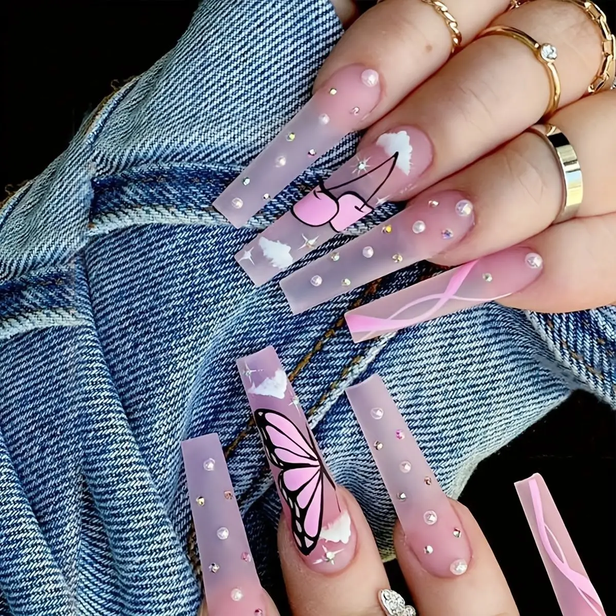 Cyflymder 24Pcs Fake Nails Supplies For Professionals False ABS Press On With Design Long French Tips Black Reusable Nails Coffin