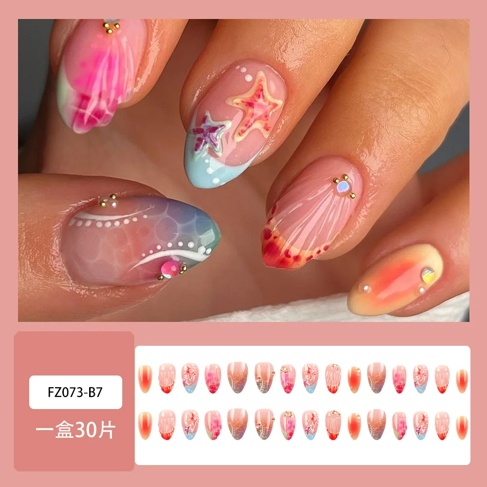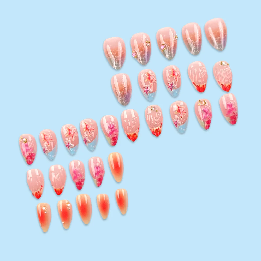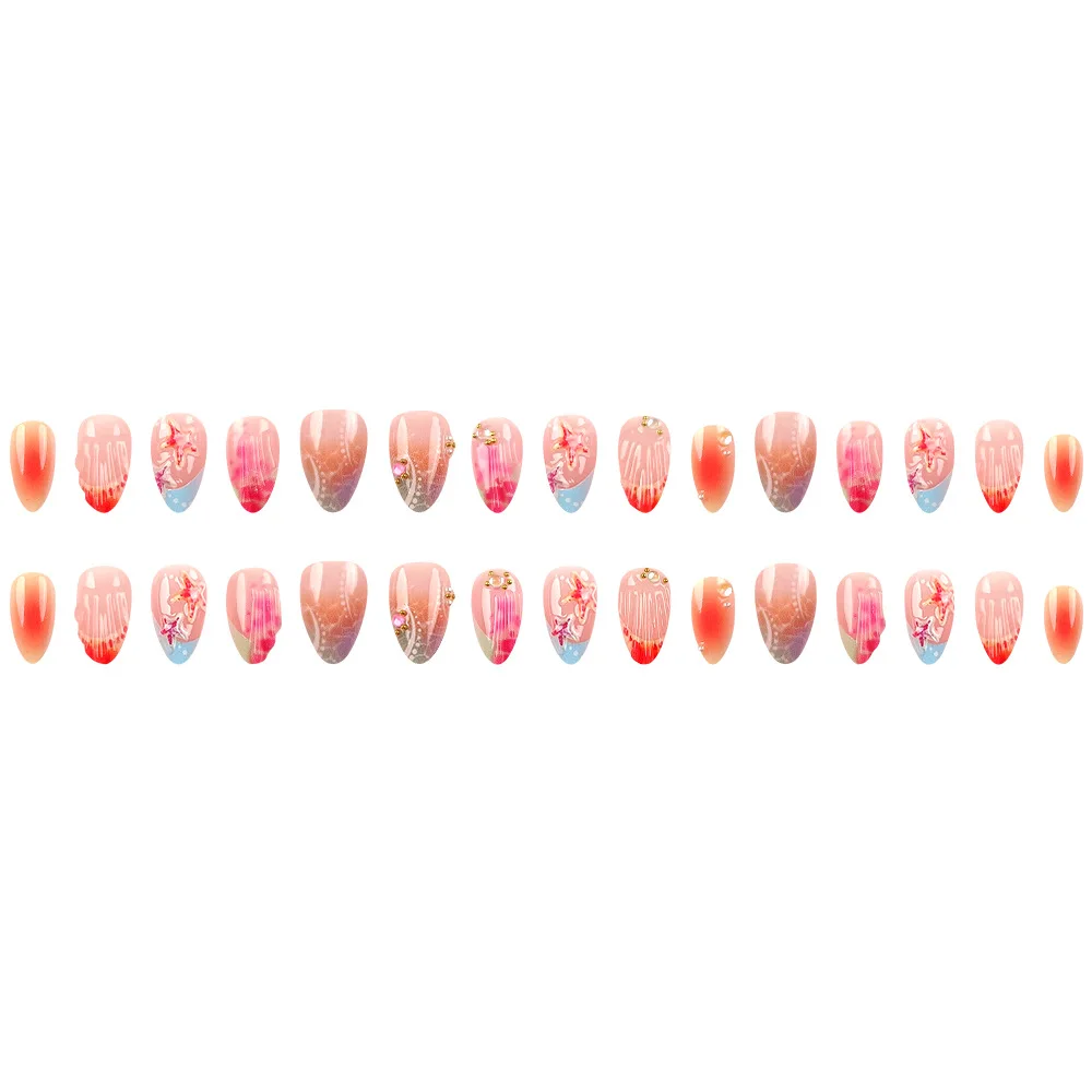 Cyflymder 24pcs French Almond Press on Nails Colorful False Nails Summer Wearable Stick-on Nails Fake Nail Uñas Накладные Ногти 네일팁