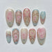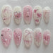 Cyflymder 24pcs French Almond Press on Nails with 3D Flower Design Korean Fake Nails for Women Girl Wearable Detachable Sweet False Nails