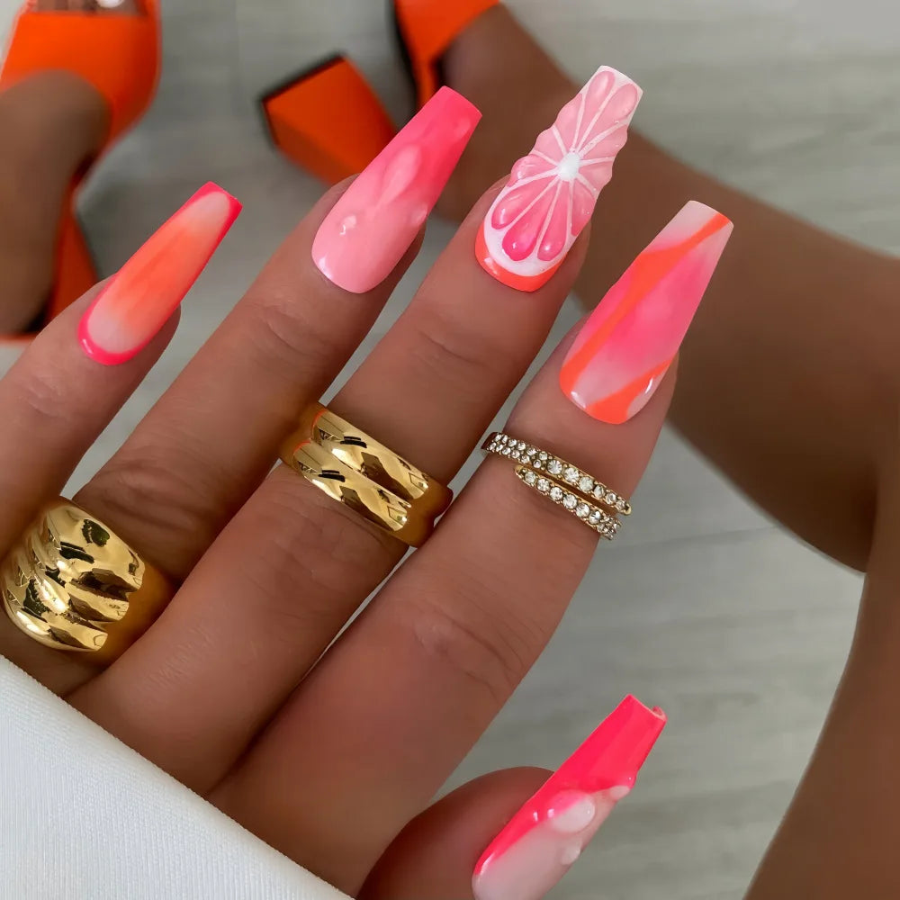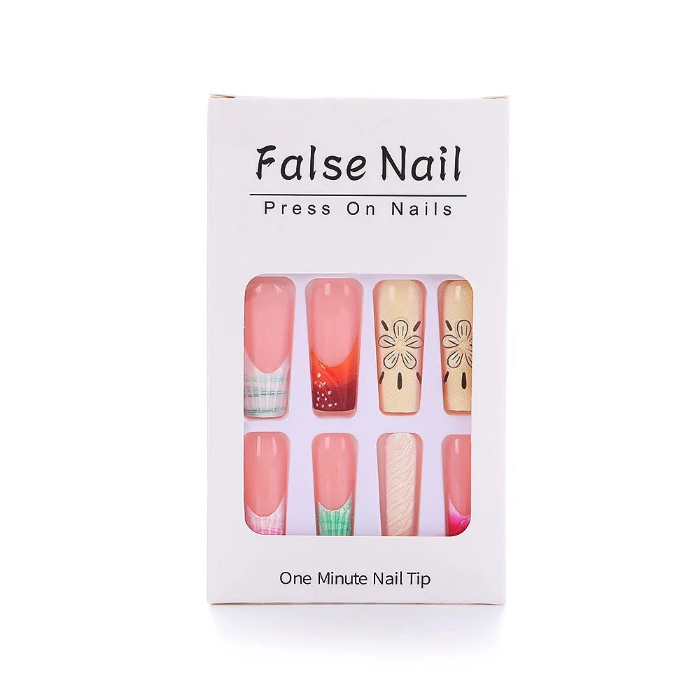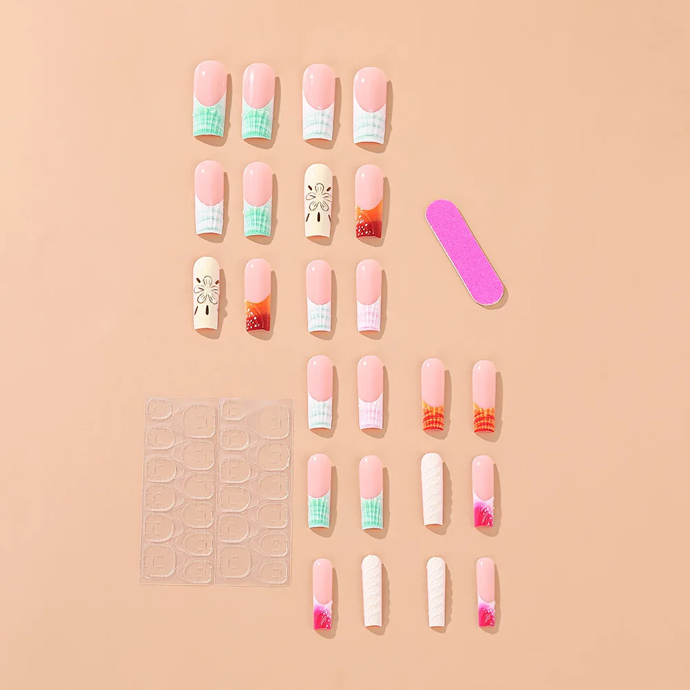 Cyflymder 24pcs Long Ballet Press on Nails Ins Ocean Shell French Fake Nails for Women Girls Wearable Detachable European False Nails