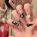 Cyflymder 24Pcs Long Square Head False Nails Press on Black Crocodile Grain French Fake Nails Star Rhinestone Reusable Full Cover Nail Tip