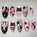 Cyflymder 24Pcs Mid-length Almond Fake Nails Cat's Eye Black Cat Bow Press on False Nails Heart Rhinestone Reusable Full Cover Nails Tips