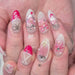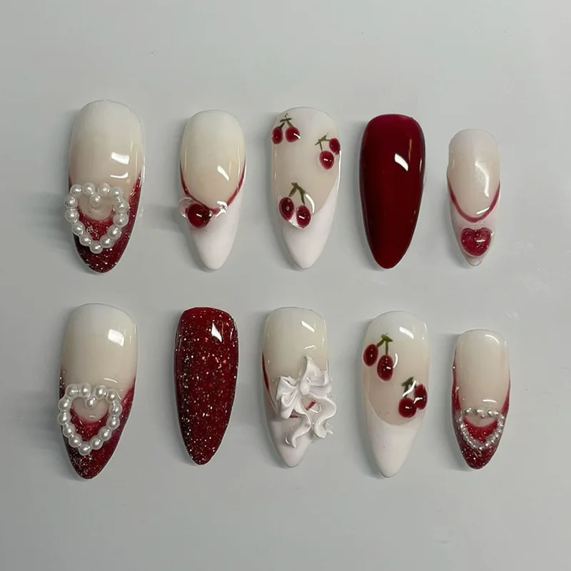Cyflymder 24Pcs Mid-length French Almond Full Cover Nails Tips Pink Smudge Detachable False Nails Bow Heart Rhinestone Press on Fake Nails