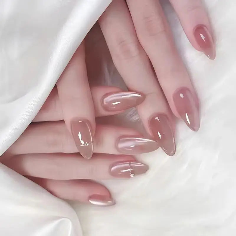Cyflymder  24pcs Pink Almond Press on Nails Simple False Nails Wearable Stick-on Nail Fake Nails Uñas Postizas Mujer Накладные Ногти 네일팁