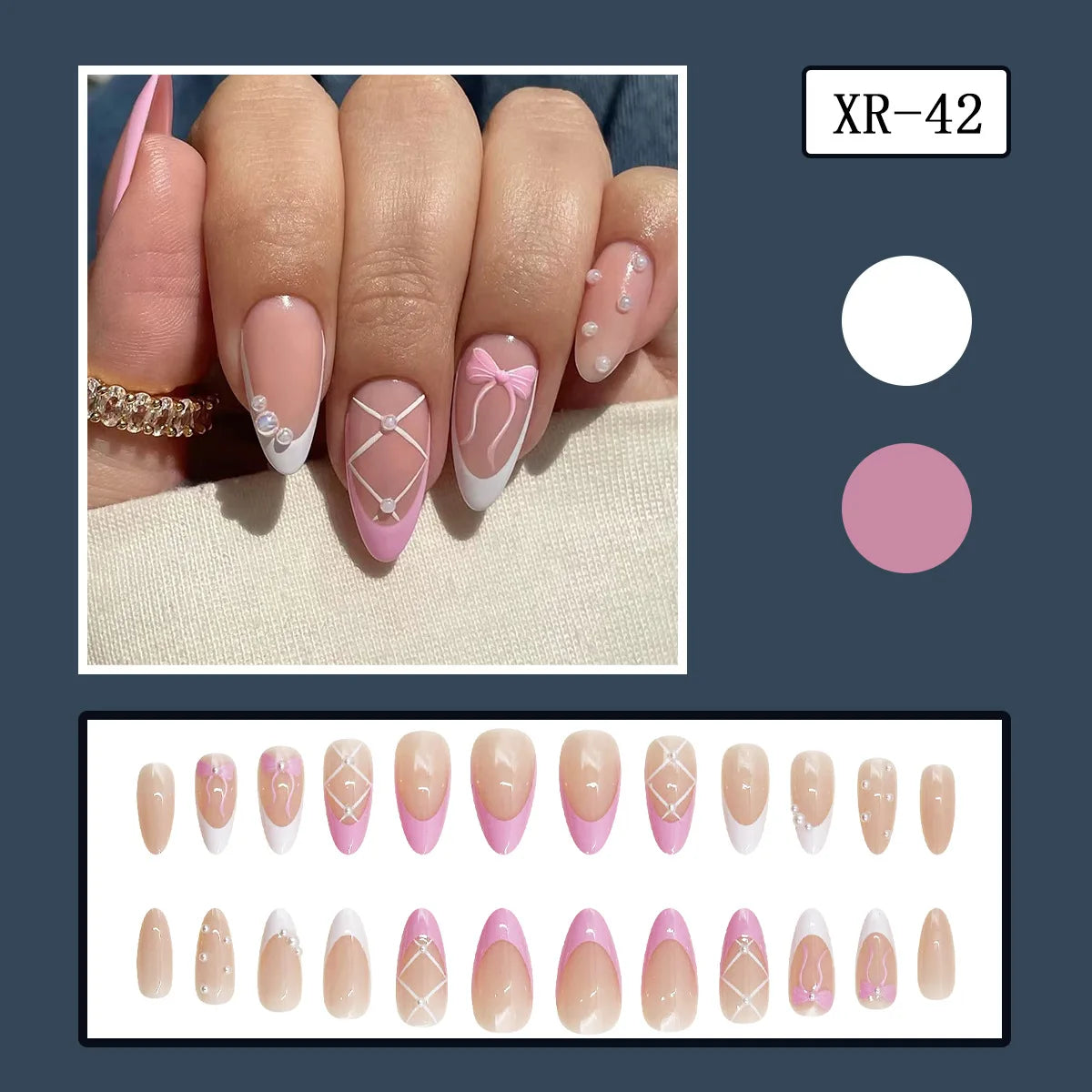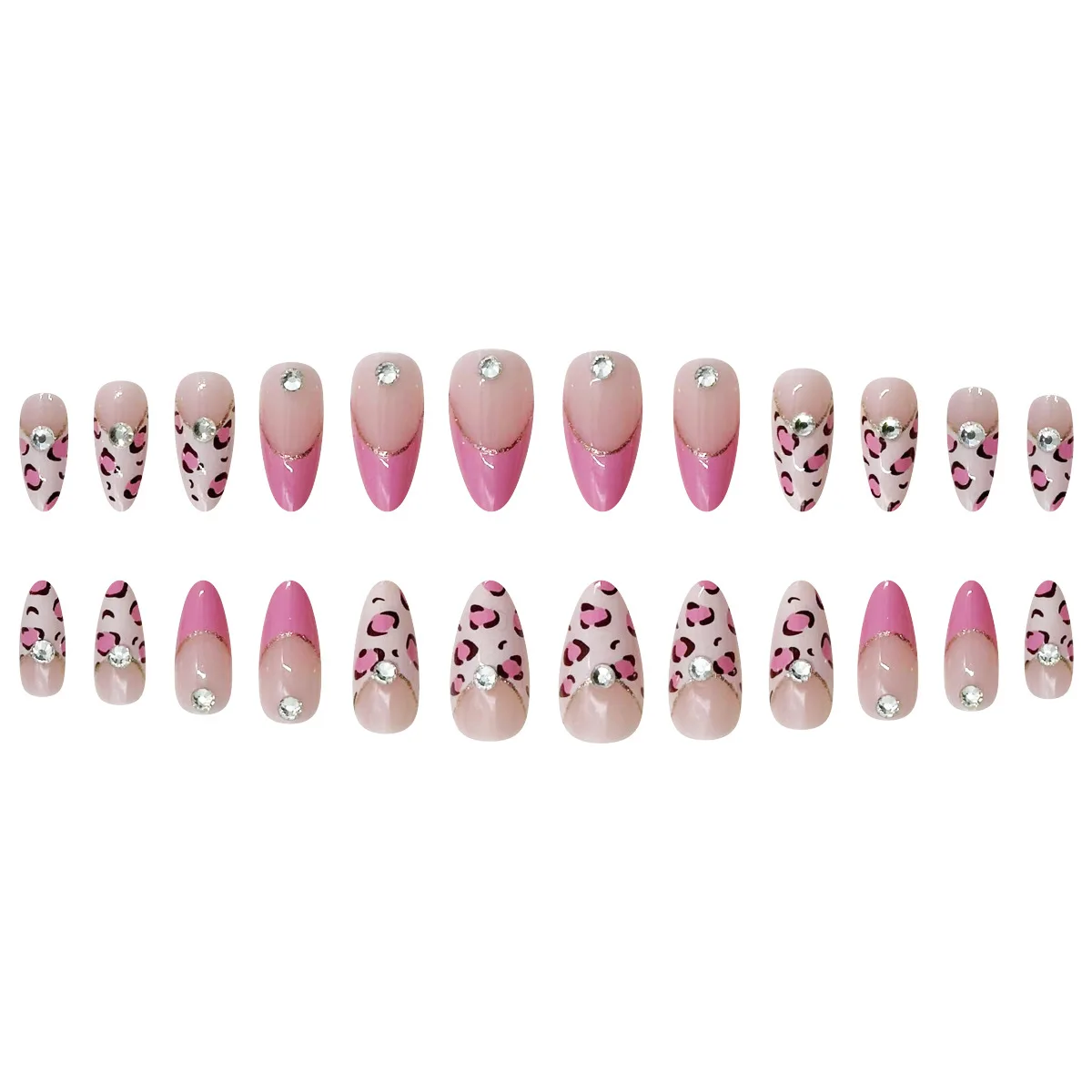Cyflymder 24pcs Pink Leopard Print Fake Nail Tips y2k Spicy Girls French Almond Press on Nail Wearable Detachable Sweet Korean False Nails