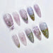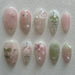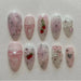 Cyflymder 24Pcs Pink Smudge Press on Fake Nails Mid-length Almond Reusable False Nail Bow Heart Rhinestone Pearl Full Cover Nails Tips Art