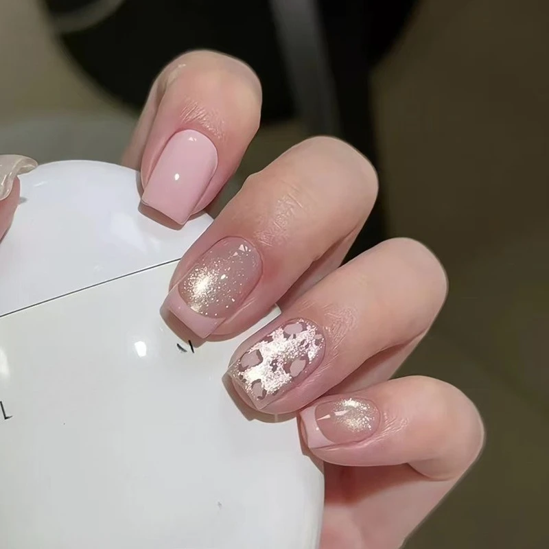 Cyflymder 24pcs/set Pink French Square Press on Nails Leopard Print False Nails Wearable Stick-on Nails Fake Nail Uñas Накладные Ногти 네일팁