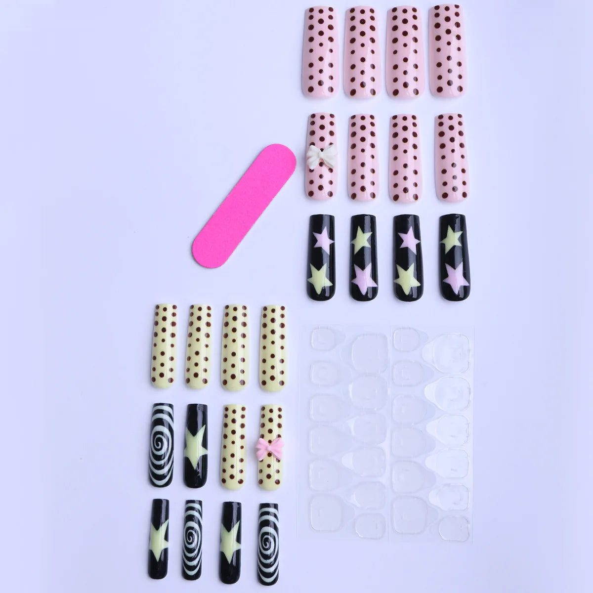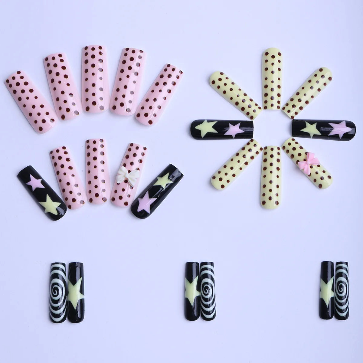 Cyflymder 24pcs Sweet Cute Dotted Fake Nails with 3D Flower Design Press on Nails INS Fashion Almond/Ballet Shaped False Nail Patches