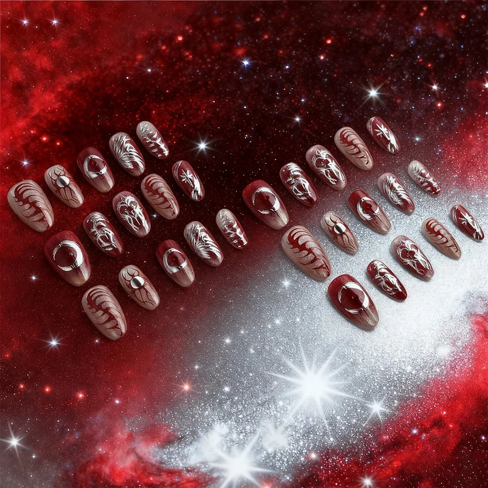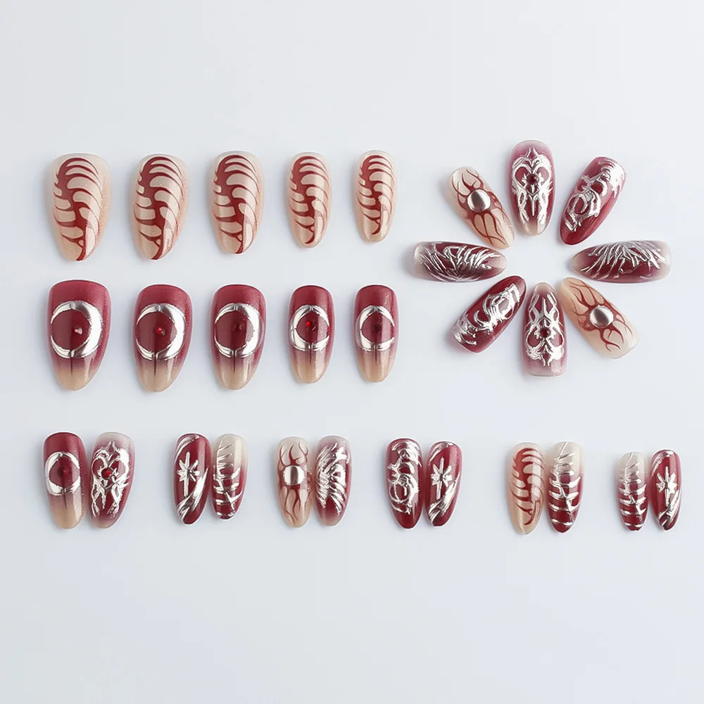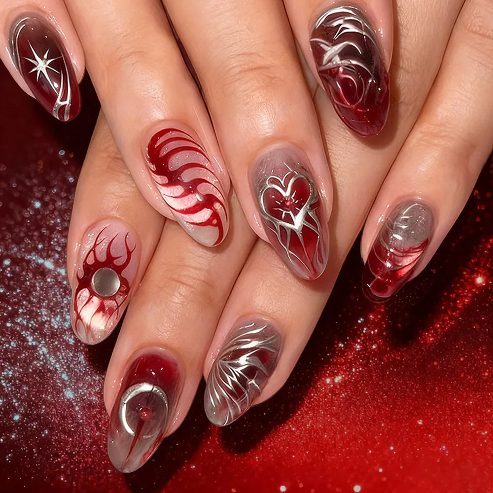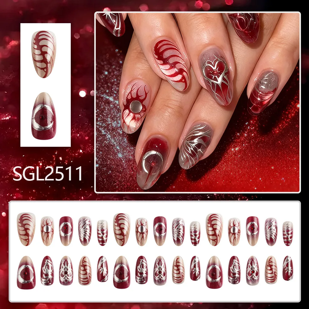 Cyflymder 30pcs Punk Cool Press on Nails Sliver Love Print Fake Nails for Women Girls Wearable Sweet Cool Y2k Style False Nails