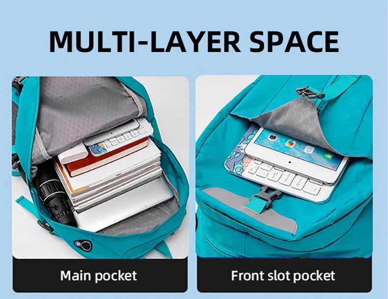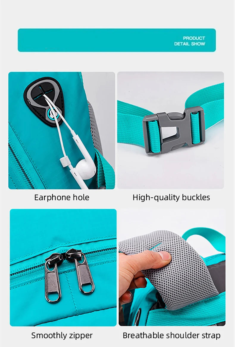 1. Large-capacity main bag set, built-in compartment pockets, bag body set front buckle pocket, front vertical zipper pocket, side mesh pockets, top zipper pocket and bottom zipper pocket. Multi-layer storage bag set, partitioned storage, easy to access