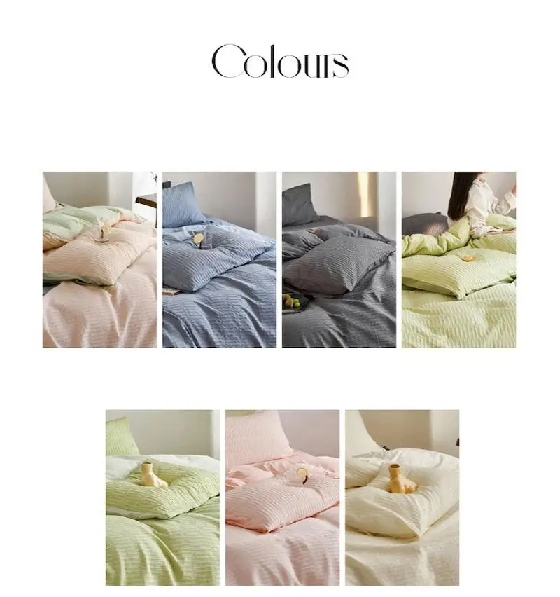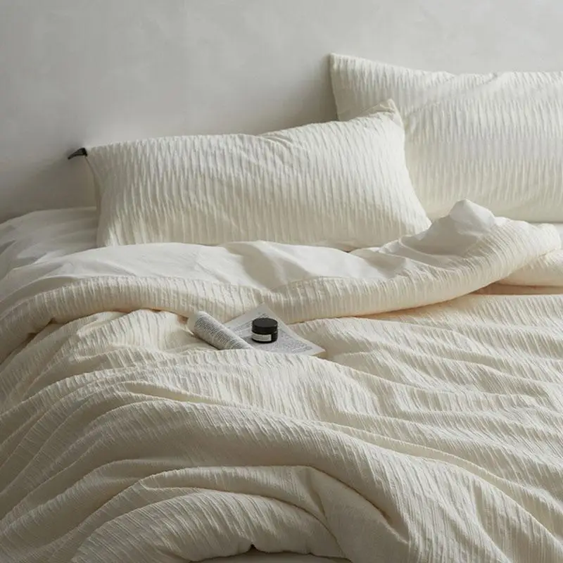 Cyflymder 40S Ripple Jacquard Pure Cotton Bedding Set Bubble Gauze Color Blocking Breathable Quilt Set Twin Full Queen King Bedclothes
