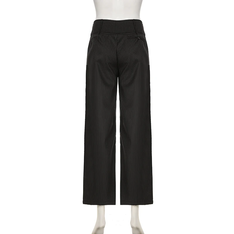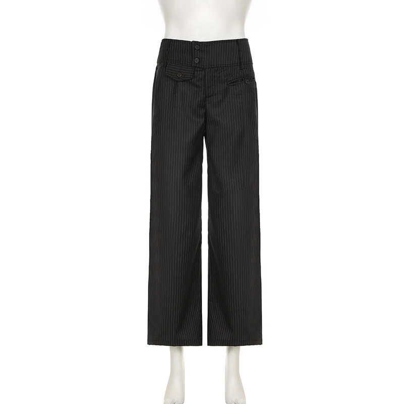 Cyflymder 90s Retro Button-up Striped Pants Women Low Rise Loose Wid-leg Casual Pants for Summer Streetwear y2k Aesthetic Trousers