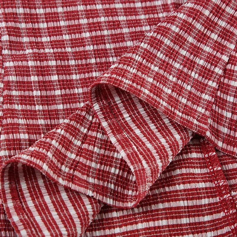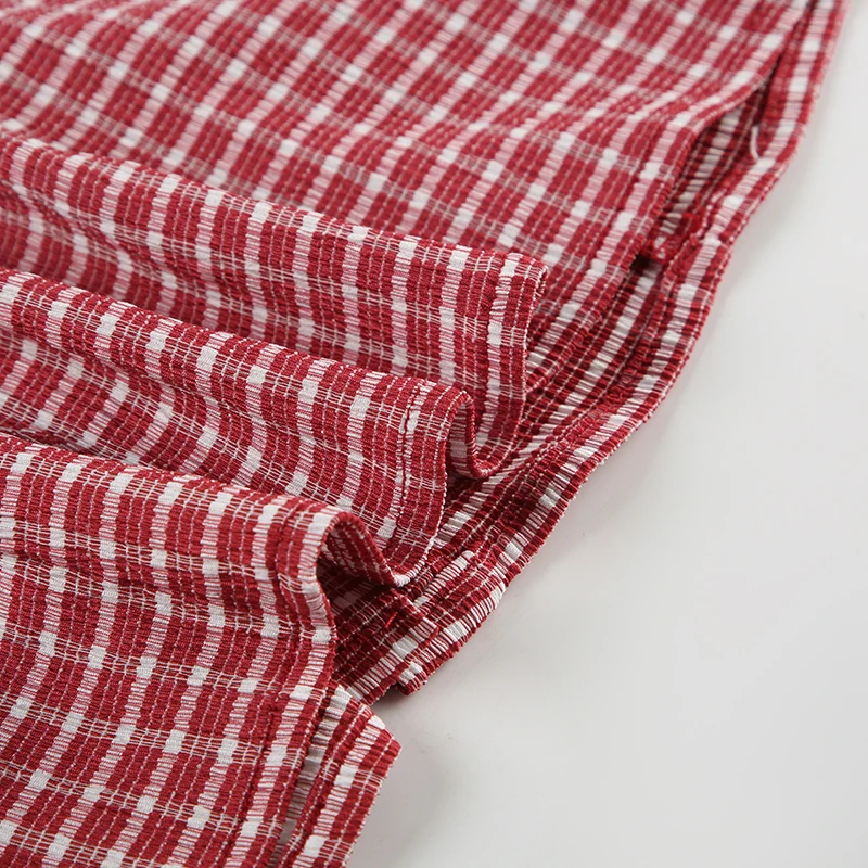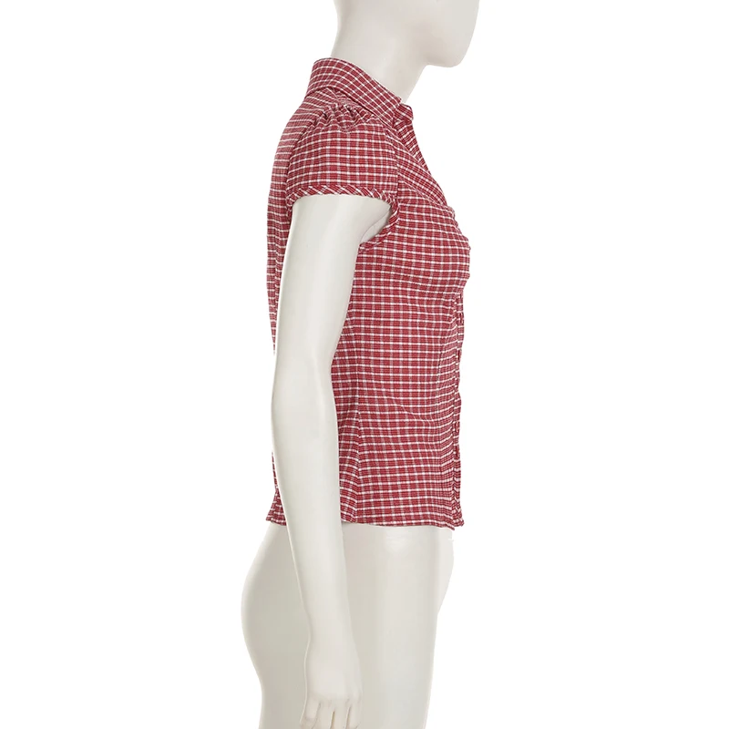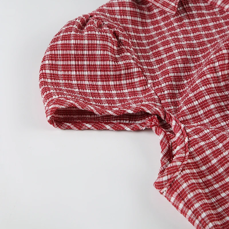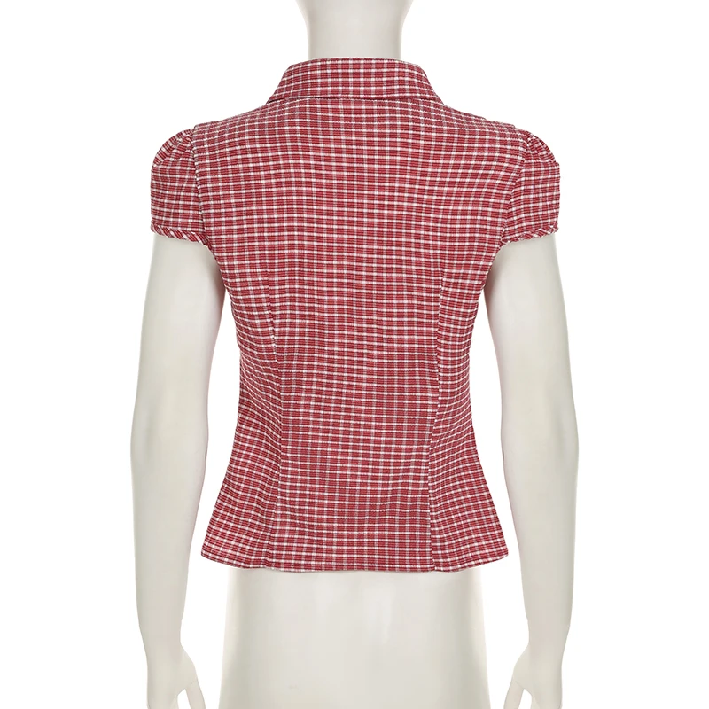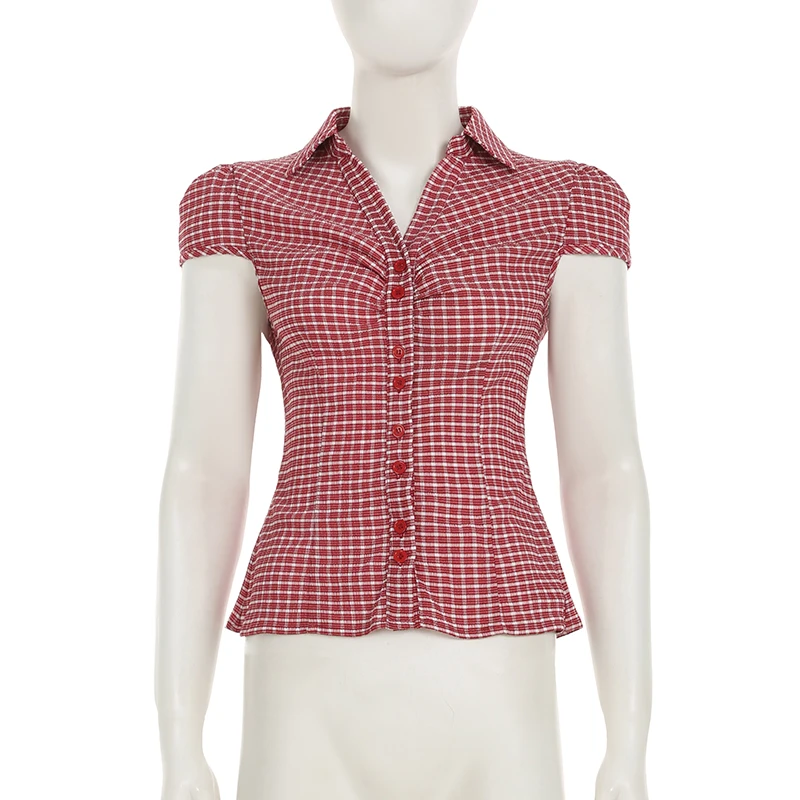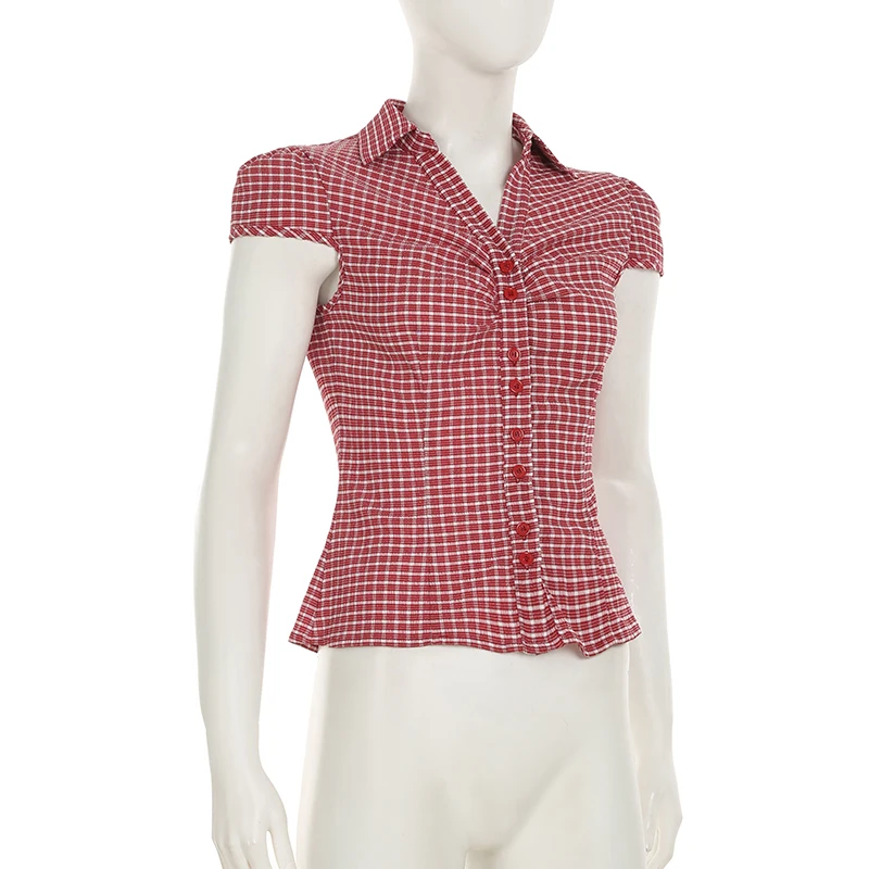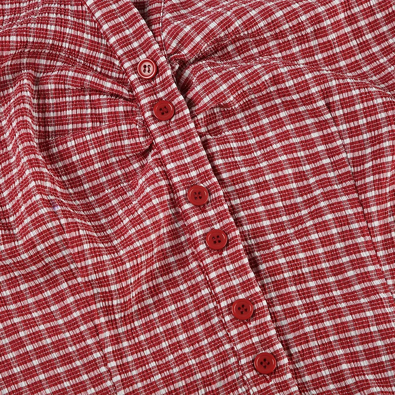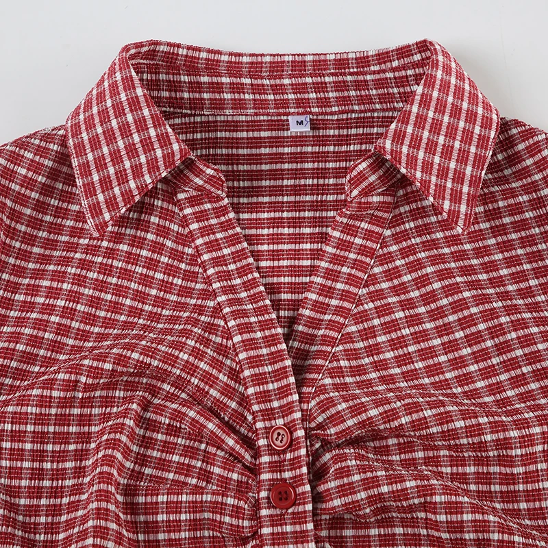 Cyflymder American Retro Red Plaid ort Sve irt Casual Slim Fit Waist Cinching Button up Top for Young Women
