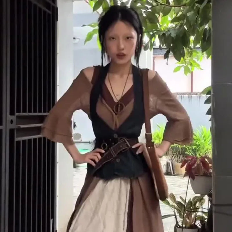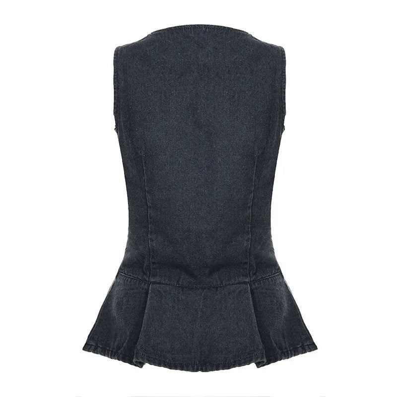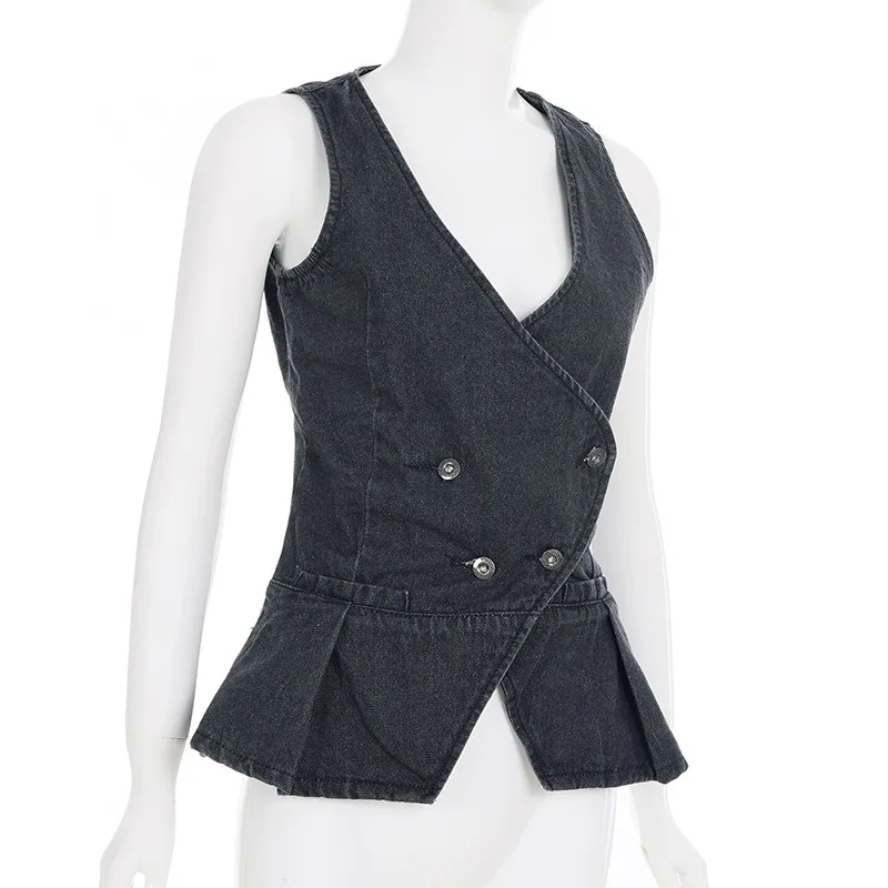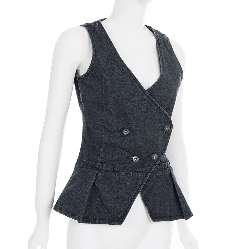 Cyflymder American Vintage Simple Deep V Neck Slim Waist Vest Personality Harajuku High Street All Match Women Camis Y2k Buttons Clothes