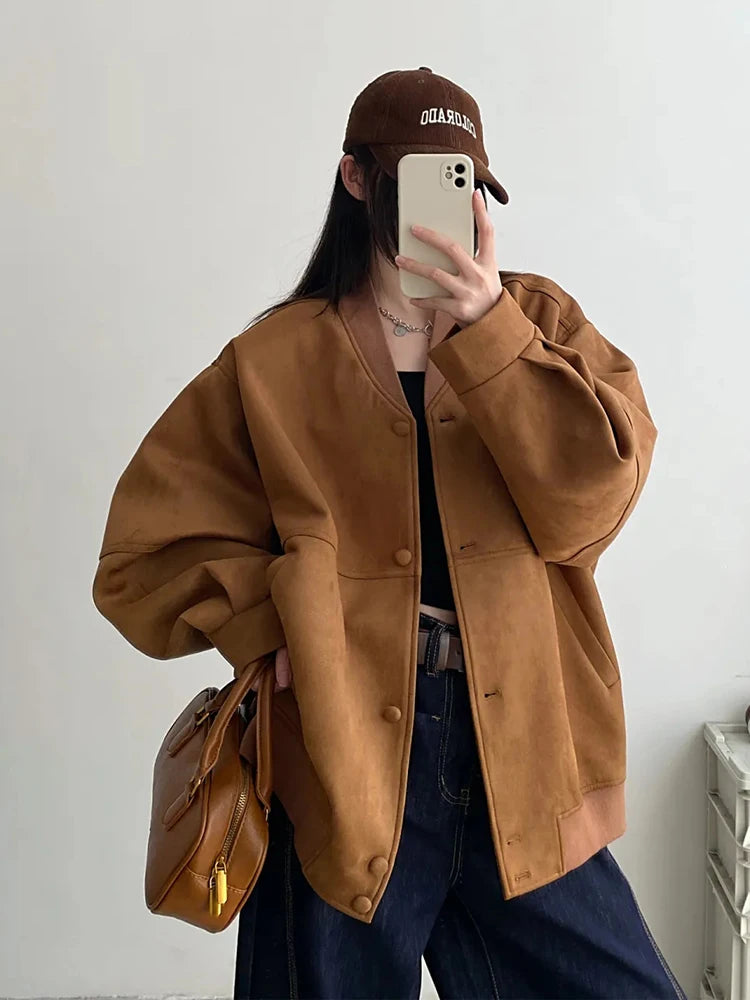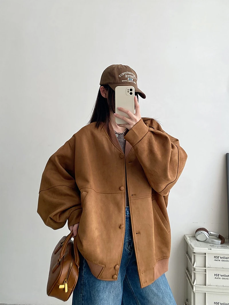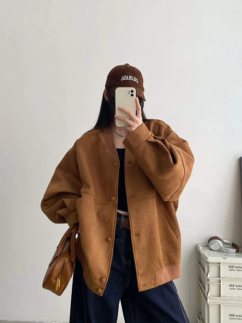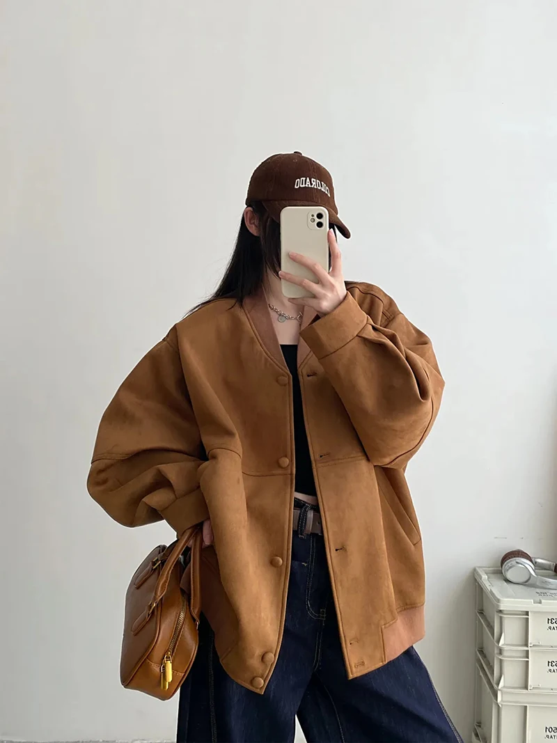 Cyflymder American Y2K Jackets Women Streetwear Loose Faux Suede Coat Vintage Long Sleeve Harajuku Bf Oversize Hip Hop Outwear New