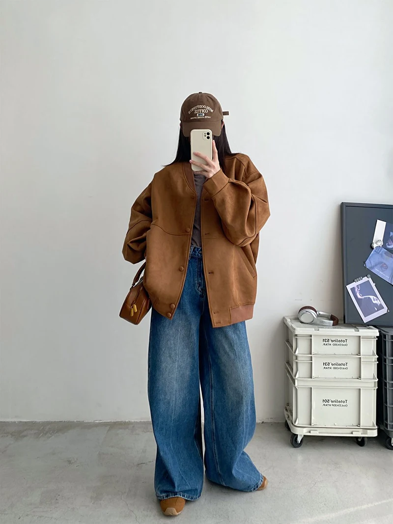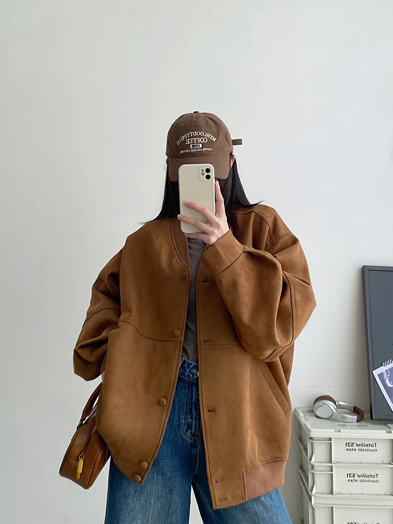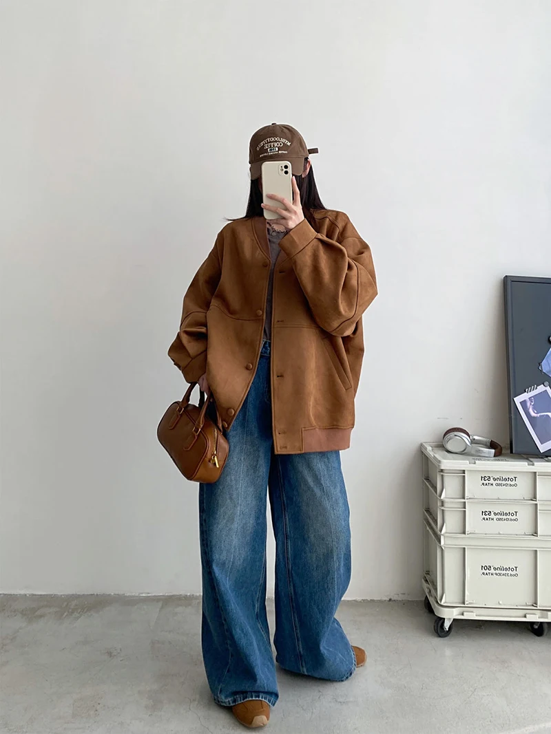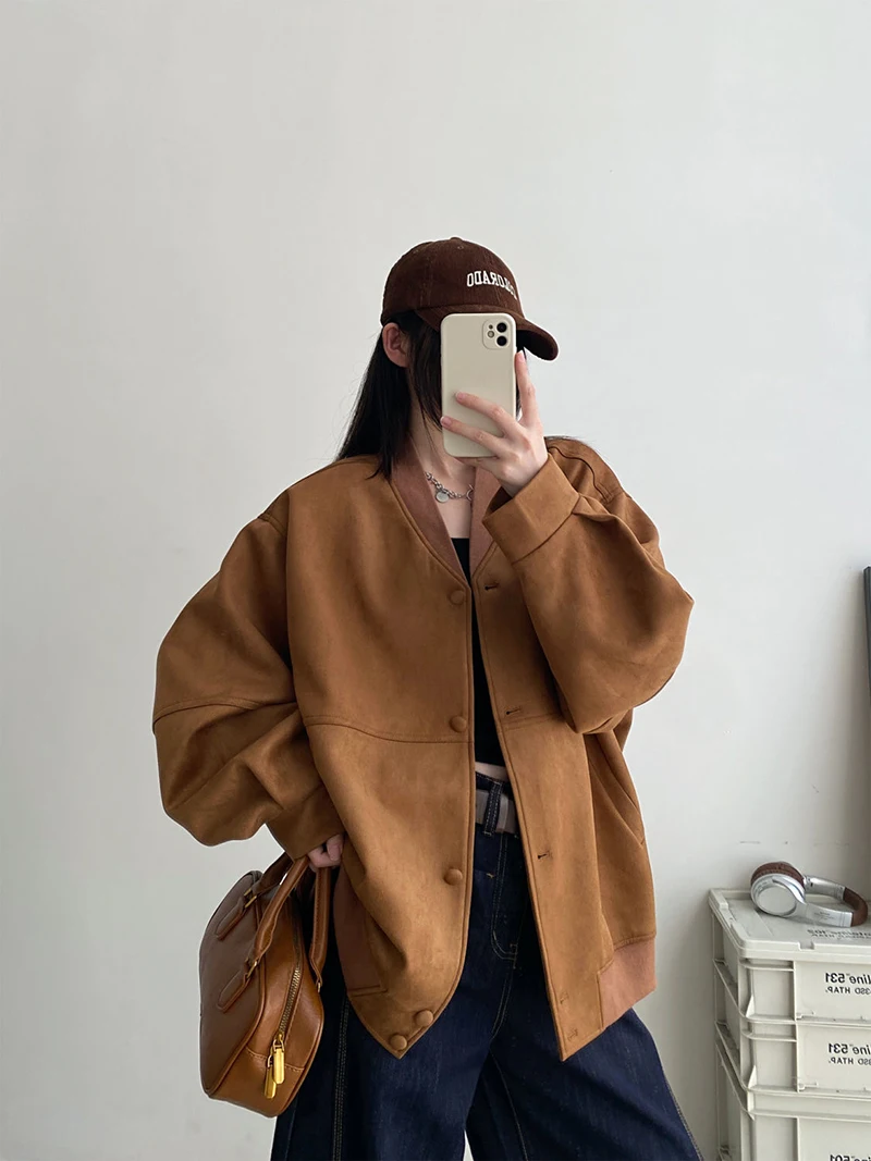 Cyflymder American Y2K Jackets Women Streetwear Loose Faux Suede Coat Vintage Long Sleeve Harajuku Bf Oversize Hip Hop Outwear New