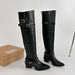 Cyflymder Autumn Vintage Thick Heel Women Knight Boots Fashion Belt Buckle Shoes Ladies Elegant Pointed Toe Mordern Knee High Booties