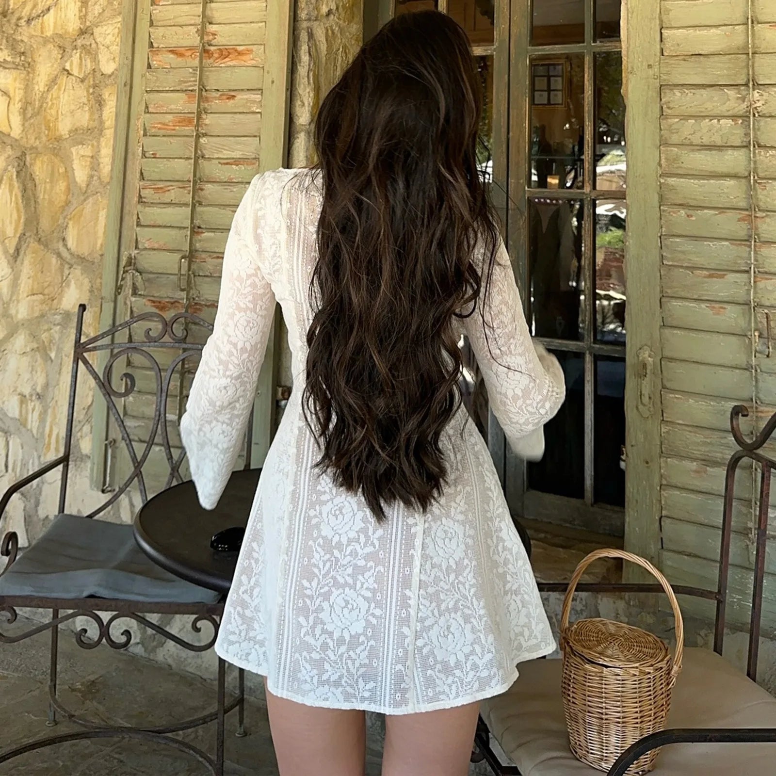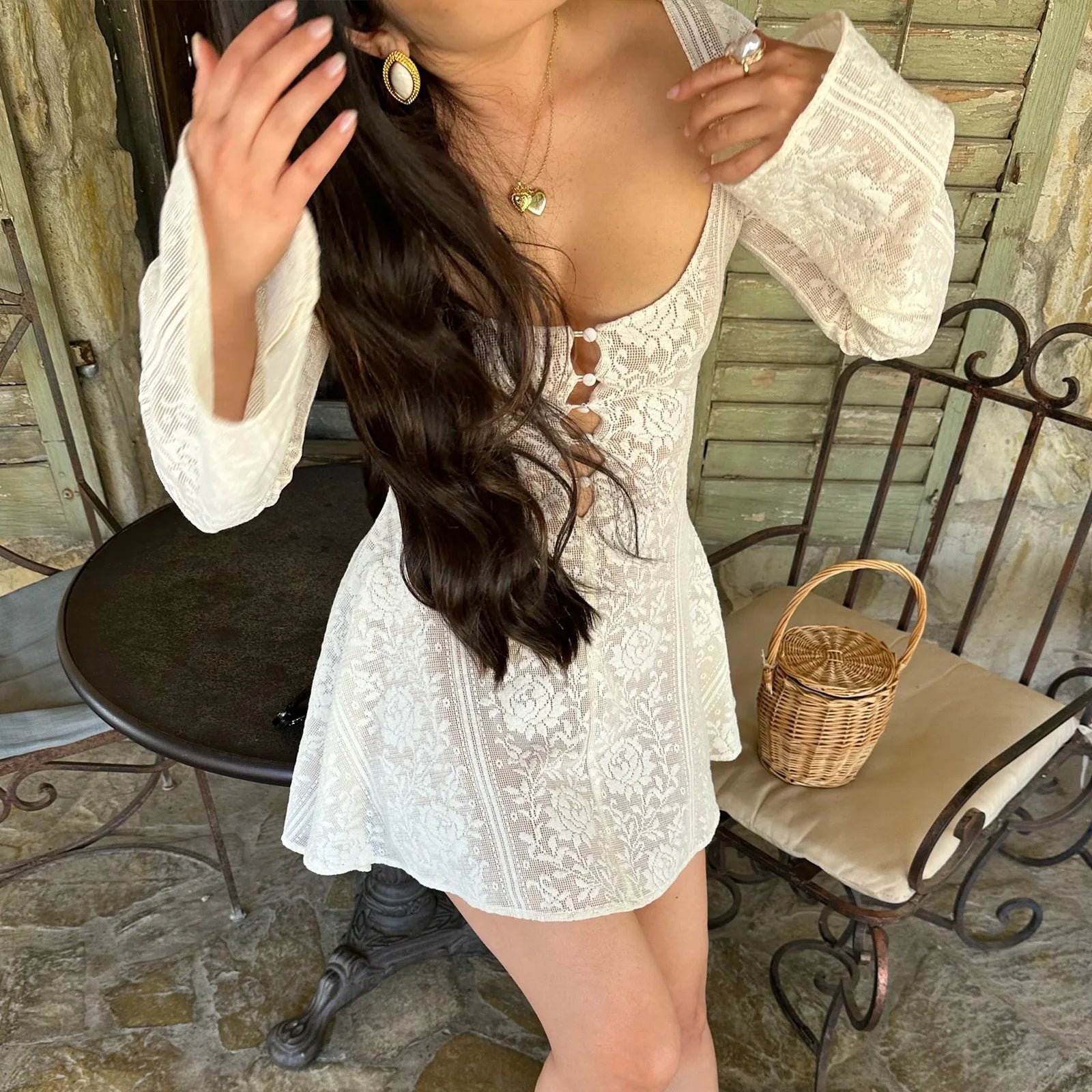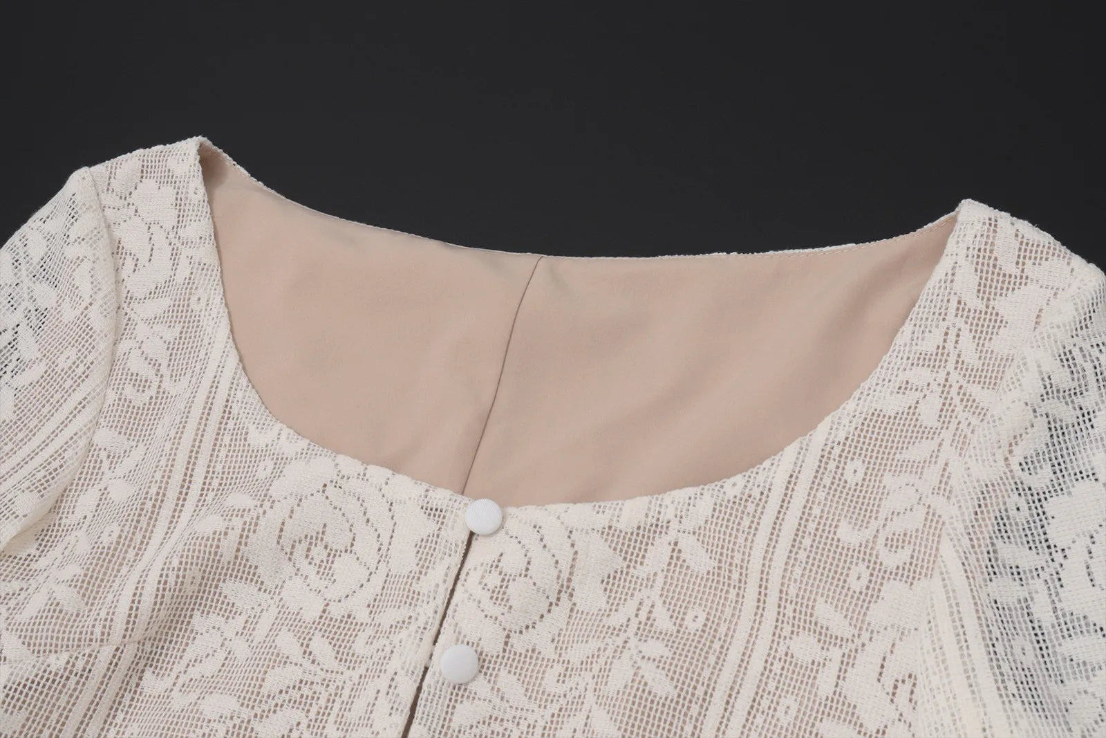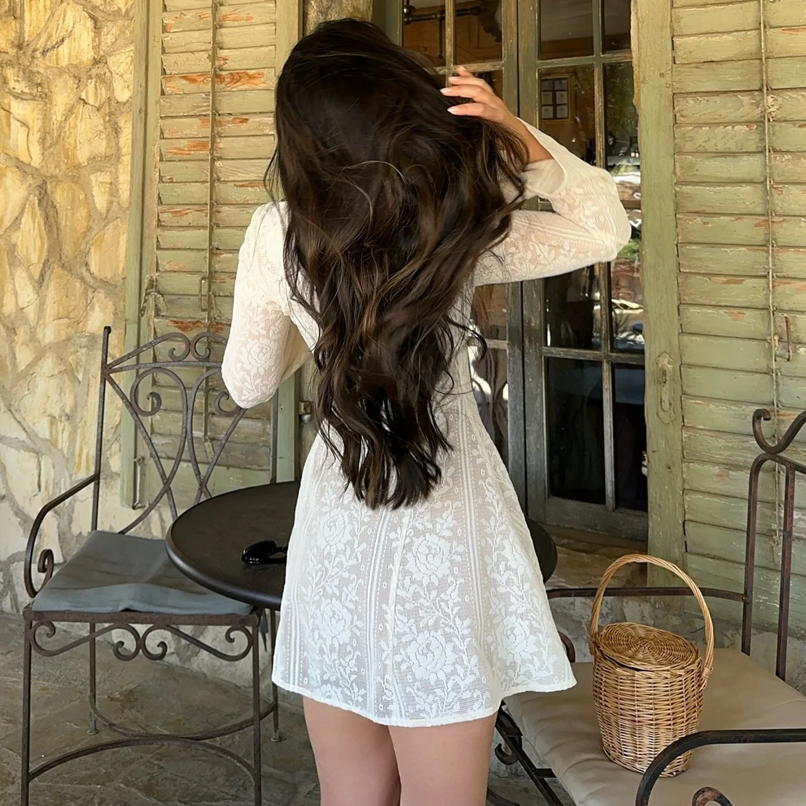 Cyflymder Autumn Women Floral Lace Patchwork U Neck Long Sleeve Bodycon Slim Waist Dress with Side Zipper
