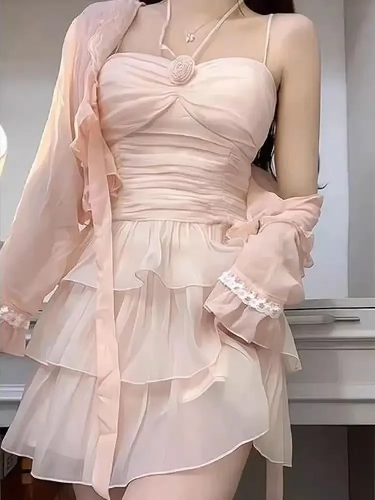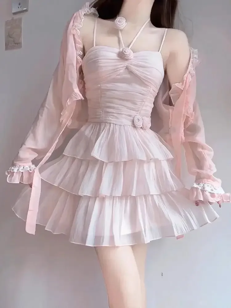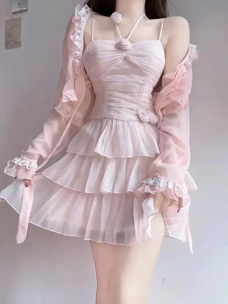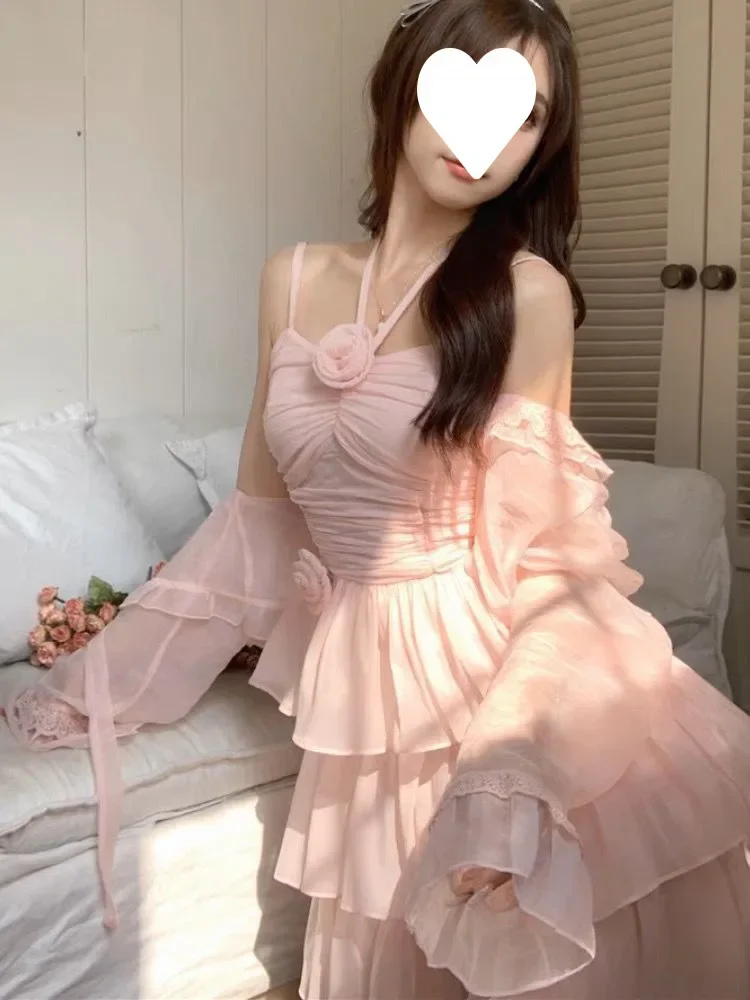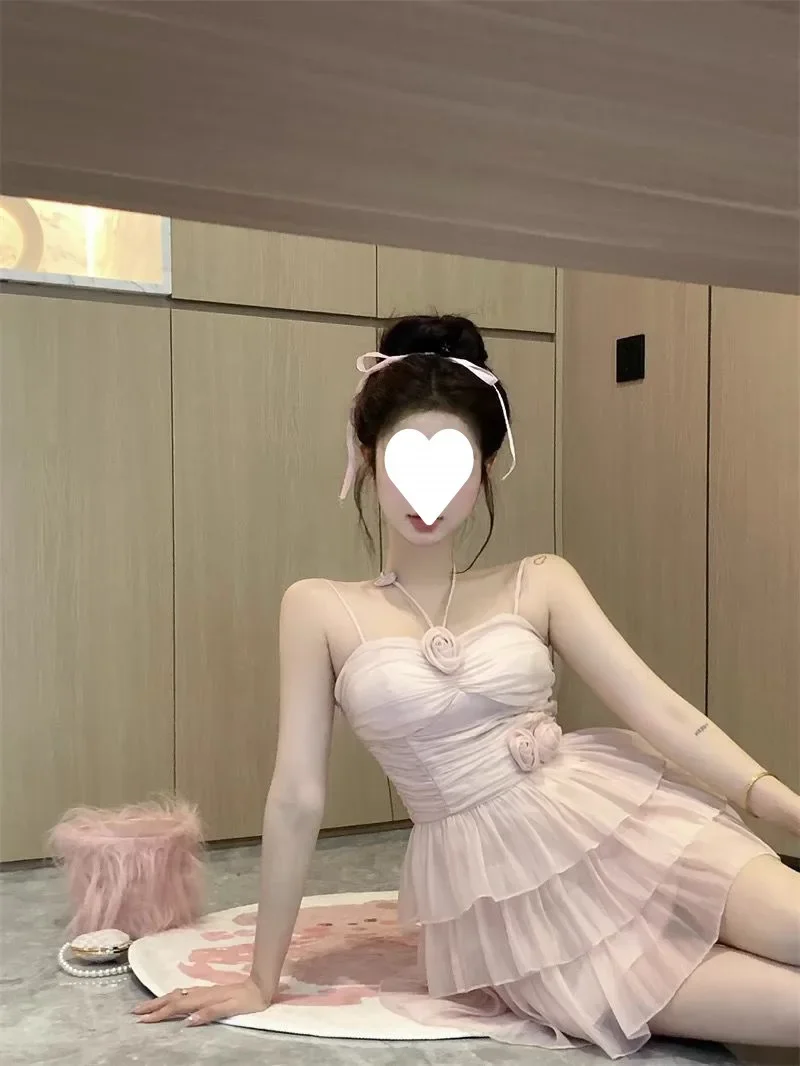 Cyflymder Ballet Style Off-Shoulder Strap Dress Women's Summer New Waist-Cinching Slimming Heavy-Work Design Short Cake Skirt Dress
